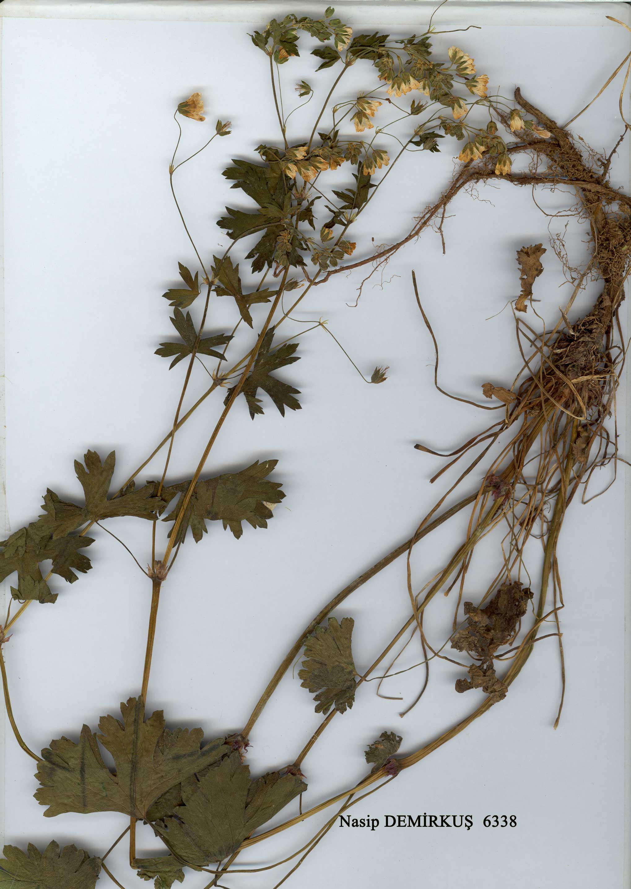 G. pyrenaicum Burm. fil., Sp. Geran. 27 (1759). Syn: G. depilatum (Somm, & Lev.) Grossh. in Grossh. & Schischk., Sched. Herb. Pl. Or. exs. f. xiv: 37 (1928). Ic: Ross-Craig, Draw. Brit. Pl. 6: 33 (1952); Reichb., Ic. Fl. Germ. 5: t. 192 (1841). Figure 14, p. 455. Map 42, p. 489. Tap-rooted perennial, 15-50 cm. Stems bearing short glandular hairs and often patent long eglandular hairs. Basal leaves palmatifid to ?; segments cuneate, truncate, shortly 2-3-fid at the apex into crenate lobules. Pedicels glandular-puberulent, defiexed in fruit. Sepals ovate-oblong, 4.5-5 mm, ± glandular-puberulent and often pilose towards the margin; awn 0.1-0.3 mm. Petals deeply emarginate. 8-10(-ll) mm, lilac or rarely white. Mericarps not wrinkled, ad-pressed-pubescent. Seeds smooth. Fl. 5-7. Woods, meadows, banks, rocky slopes, streams, 50-2400 m. Described from Pyrenees. Al Tekirdağ: Ganos Da., Stojanov. A2(E) Istanbul: Bahçeköy, 29 v 1892, Azn.! A2(A) Kocaeli: Izmit, 1947, Heilbronn! A3 Bolu: Abant G., 7 ix 1940, B. Post! A4 Kastamonu: Kastamonu to Inebolu, D. 21614! A5 Samsun: d. Bafra, Çetirli Pinar Köy, 50 m, Tobey 174! A6 Samsun: Ladik, Buruboy lake, 1000 m, Tobey 769! A7 Gümüşane: Wang, Sint. 1894: 5693! A8 Rize: Ikizdere to Ispir, 2000 m, Stn. & Hend. 6219! A9 Çoruh: Ardanuç to Kordevan D., 1700 m, D. 30106! Bl Izmir: Izmir, Aucher 2101! B2 Kütahya/Bursa: Tavşanli to Inegöl, 1200-1400 m, Dudley, D. 36165 p.p..! B3 Konya: Akşehir, 1942, Heilbronn! B4 Ankara: Incesu De. nr. Ankara, Gassner 400! B5 Yozgat: Akdağmadeni, Aktaş, Curtis 134! B6 Yozgat: Akdağmadeni to Büyük Nalbant Da., 2000 m, Coode & Jones 2069! B7 Tunceli: Munzur Da. above Ovacık, 2400 m, D. 31378! C2 Muğla: d. Fethiye,. M assicytus (Ak Da.), Forbes ! C3 Antalya: d. Kemer, Katara pass, Forbes! C4 Konya: Ermenek to Yelibel Da., 1660 m, Hub.-Mor. 8579. C5 Niğde: Ala Da., 2190 m, Parry 191! C6 Maraş: Koyunoluk Da. (Maraş-Göksun), 1200 m. D. 27578! C9 Bitlis: Karz Da. above Kotum, 1800 m, D.-22243! Europe, N.W. Africa, Caucasia, N. Iran; introduced in N. America. In facies resembling a perennial version of G. molle subsp. brutium. Several indumentum variants have been described. Var. depilatum Somm. & Lev. (treated as a species in Fl. URSS, and bearing only very short, glandular hairs on the stems) is widespread, but mtergrades with the typical form with long spreading eglandular hairs on the stems. |
