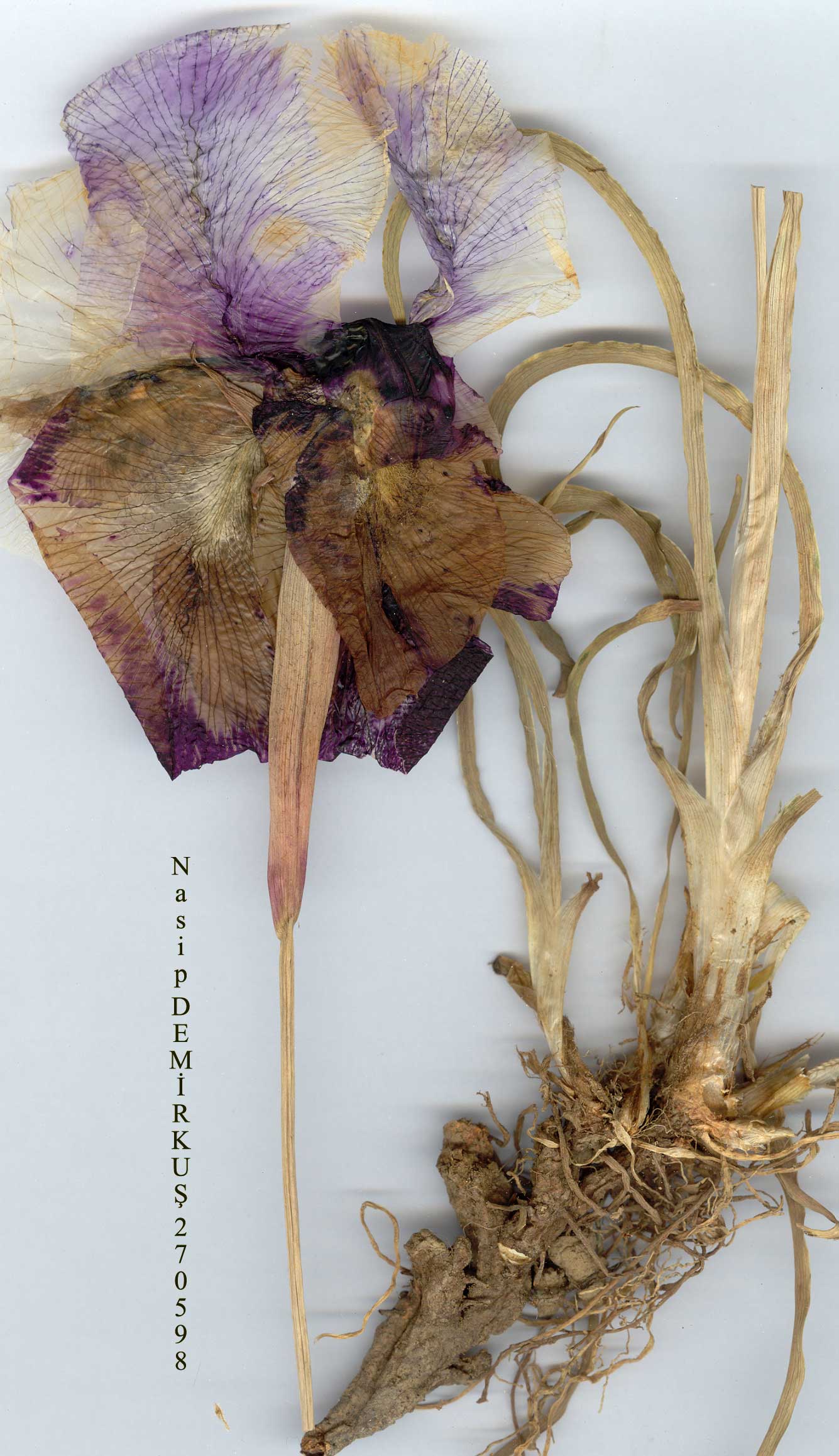I.iberica Hoffm. in Comm. Soc. Phys. Mosq, 1:41 (1806/08). Plant 13-30 cm. Rhizome compact, non-stoloniferous. Leaves 4-6, falcate, greyish-green, 0.2-0.6 cm broad. Bract and bracteole 3-7.2 cm, greenish, sometimes veined brown. Perianth tube 2-3.5 cm; falls broadly elliptic to ± orbicular, 3.5-6.5(-8.6) x 2.7-6.5 cm, often emarginate, heavily veined and spotted brownish-purple or deep purple on a white ground, with an orbicular blackish or dark brown signal spot in centre and sparsely to densely bearded on claw with a wide band of long purplish-brown hairs; standards ± orbicular,4.5-8.5(-ll) x 3.5-7.4(-8.4) cm, pure white or veined brown or purple, sometimes as densely as falls; style braaches 3-5.5(-7) x 1.2-2.5 cm, with erect or reflexed crenulate lobes Q.8-2(-2.5) x 0.7-1.8(-2) cm. Capsule fusiform, 7-9 x 2-2.5 cm; seeds c. 5 mm with a large white aril. 1. Falls heavily spotted and veined brownish-purple on a white ground; standards pure white or sightly veined at base subsp. elegantissima 1. Falls and standards heavily veined and spotted brownish-purple or dark purple on a white ground subsp. lycotis subsp. elegantissima (Sosn.) Takht. & Fedorov, Fl. Erevana ed. 2:331 (1972). Syn: /. elegantissima Sosn. in Monit. Jard. Bot. Tiflis 36:2 (1915). Ic: Bot. Mag. 96: t, 5847 (1870); FL Iraniea 112: t. 12 f. 4(1975);Mathew,The Iris b. & w. t. 14 & 15 (1981). Figure 14. Map 57. Fl. 5-6. Rocky or sandy hillsides, in short turf or steppe, often on igneous rock formation, 1100-2250 m. Syntypes: [Turkey A8/9 Erzurum] Prov. Kars. Distr. Oity. Inter Tedzerek et Toprach-Kala, in collibus siccis. 15 v [19] 12 - prope p. Katrys, in Agris. 25 v [ 19] 12 - Olty, E. Koenig (TBI). E. Anatolia. A8 Erzurum: Tortum, Ozyurt 1065. A9 Erzurum: Horasan, 1800 m, Baron 2166! Kars: 25 km from Kağizman to Kars, 1720 m, Güner İ549! B8 Erzurum: E.of Erzurum, 2000 m, Furse&Synge 207! B9 Erzurum: Tahir pass, E. of Aktaş, 2250 in, Watson et al. 1612! Ağri: 10 km E. of Tutak, 1500 m, D. 4347i! Yas: Van. to Muradiye, T. Baytop (İSTE 27833)! B10 Kars: Afri Da,, pass S. of Iğdir, 1100 m, Mathew & Tomlinson 4277! Agri: Dofubayazit, Ayyildiz ar Gürbulak, 1600 m, Güner 1552! N.W. Iran, Soviet Armenia ( W, Nakhichevan). Ir.-Tur. element. |