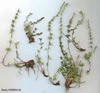 M. cristata (Hampe) Griseb., Spic. 2:122 (1844). Syn: Thymus cristatus Hampe in Flora (Regensburg) 20(l):233 (1837)! Perennial with a stout woody tortuous stock. Flowering stems erect or ascending, 3-16 cm, bearing at base short, hairy, imbricate-leaved resting-buds. Median leaves narrowly elliptic to lanceolate, 5-8 x 1-3 mm, subsessile, margin narrowly revolute, pubescent to pilose, usually overlapping, erect or patent. Inflorescence spike-like, head-like or thyrsoid, 1-10 cm x 5-15 mm. Verticillasters conferted or ± distant, 2-6-flowered, longer than floral leaves; cymules ± lax or very shortly stalked. Bracteoles subulate, shorter to longer than pedicels. Calyx narrowly tubular, 3-6 mm, subactinomorphic, strongly nerved, pubescent; teeth subequal, lanceolate-subulate to narrowly triangular-acuminate, 1/3-1/5 as long as calyx, straight or subpatent; throat bearded. Corolla 5-11 mm, white to pale mauve, purplish or carmine. Nutlets oblong, c. 1 x 0.4 mm, acuminate. 1. Leaves suberect, imbricate; inflorescence spike-like, 5-7 mm broad (excl.corollas); corolla 5-6 mm 2. Stems 5-16 cm; inflorescence 3-10 cm x 6-7 mm, dense; calyx 3-4 mm subsp. cristata 2. Stems 3-7 cm; inflorescence 1.5-2.5(-4) cm x c. 5 mm; calyx 4-4.5 mm subsp. xylorrhiza 1. Leaves ± patent; inflorescence thyrsoid or head-like, 8-15 mm broad (excl. corollas); corolla 6-11 mm 3. Calyx 5-6 mm; corolla 8-11 mm, carmine; inflorescence congested, head-like, as long as broad, cymules dense subsp. carminea 3. Calyx 3.5-4.5 mm; corolla 6-7 mm, white, mauve or purple; inflorescence usually longer than broad, cymules lax 4. Flowering stems 3-5(-7) cm, usually branched above, forming a domed plant; inflorescence 1-3 cm x 8-10 mm, verticillasters crowded together; leaves and stems puberulent (hairs 0.1-0.2 mm) subsp. phrygia 4. Flowering stems 4-12 cm, simple or branched below; inflorescence 3-7 cm x 10-15 mm, verticillasters laxer and clearly separated; leaves and stems patently pilose (hairs up to 0.5 mm) subsp. orientalis subsp. cristata. Map 48. Type: [Bulgaria] in Rumelien, Frivaldsky (iso. K!). Central N. Anatolia. A4 Zonguldak: Safranbolu, Wiedemann! A5 Amasya: Babasihi Da., 1400m,Bornm. 1890:3028! N. & C. Balkans. Medit. (mt.) element? subsp. xylorrhiza (Boiss. & Heldr.) Davis in Notes R.B.G. Edinb. 21:64 (1952). Syn: M. xylorrhiza Boiss. & Heldr. in Boiss., Diagn. ser. 1(12):49 (1853)! Map 48. Fl. 6-7. Crevices of limestone rocks, 1500-2000 m. Lectotype designated here: [Turkey C3 Isparta] in fissuris rupium Tauri Lycaonici, 1520 m, in Monte Anemas, Heldreich (G!). S,W. Anatolia. C2 Muğla: Çal Da., 35 km N. of Fethiye, 1900 m, Lambert & Thorp 573! Antalya: Kuhu Da., S. of Elmalı, 7/10 vii 1969, Fitz & Spitz. 213! Ak Da., 2000 m, Sorger 68-26-55! C3 Antalya: Antalya, d. Gebiz, Boz-burun Da., 1500 m, D. 15561! Endemic. E. Medit. (mt.) element. |
