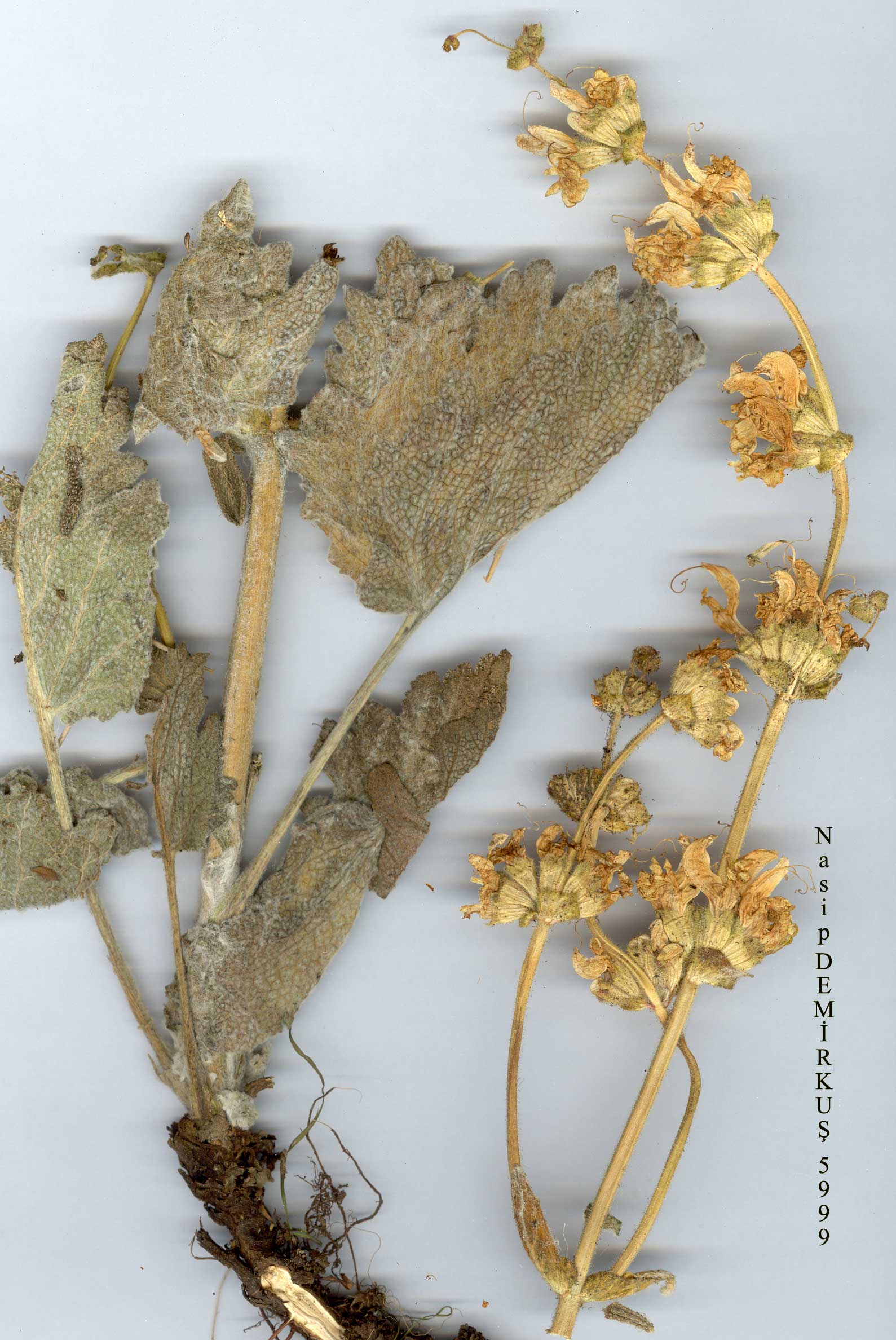 S. microstegia Boiss. & Bal. in Boiss., Diagn. ser. 2(4): 17 (1859). Syn: S. verbascifolia Bieb. var. cana Boiss., Fl. Or. 4:619 (1879)! S. chnoodes Stapf in Denkschr. Akad. Wiss. Wien, Math.-Nat. Kl. 50:98 (1885)! Ic: J. Roy. Hort. Soc. 85(10): t. 140 (1960). Map 51. Perennial herb with a woody rootstock. Stems few or several, erect, 20-100 cm, densely pilose-villous glandular, often eglandular lanate below. Leaves mostly basal, variable in size and shape, ovate to oblong, (5-)7-17(-20) x 3-8(-14) cm, white or grey lanate, obtusely lobed or irregularly serrate, sub-cordate; petiole 3-16(-20) cm. Inflorescence usually a widely spreading panicle, often yellowish-green. Verticillasters 4-6-flowered, usually distant: Bracts variable, broadly ovate, 9-17 x 8-14 mm. Pedicels 2-5 mm. Calyx ± campanu-late, 9-12 mm, to c. 11-14 mm in fruit, densely glandular with capitate glan-dular hairs and sessile glands; upper lip shortly tridentate, median tooth much shorter; lips ± equal. Corolla white, lip fading yellow, 17-30 mm; tube 5-8 mm, ventricose, squamulate; upper lip compressed, strongly falcate. Stamens B. Nutlets ovoid, c. 3 x 2.5 mm. 2n=16. Fl. 6-8. Rocky limestone and igneous slopes, screes, in Quercetum, Pinus woodland, fieldside, 970-3350 m (nr permanent snowbeds). Lectotype designated here: [Turkey B5 Kayseri] in monte Alidagh prope Caesaream (Kayseri) Cappadociae sito, 1400 m, [9 viii 1856],Balansa [1083] (holo. G! iso. W!). Mainly E. & S. Anatolia. A7 Sivas: 10 km E. of Suşehri, 1400 m, Spitzen-berger 83! A9 Kars: Kağizman, Turkewicz 627! B5 Kayseri: 5 km N.W. of Incesu, 1400 m, Sorger 77-43-22! B6 Maraş: d. Göksun, Binboğa Da., N.E. side of Isik Da., 1900 m, D. 20059! B7 Erzincan: Keşiş Da. above Cimin, 2700 m, D. 31743! B8 Erzurum: 14 km from Erzurum to Pasinler, 2000 m, D. 47452! B9 Ağri: Ağri to Horasan, 1900 m, Lamond 2556! C4 İçel: 23 km from Gülnar to Silifke, 970 m, Hub.-Mor. 9597! C5 Niğde: S. of Maden vil-lage, 2130 m, Darrah 413! C6 Adana: d. Osmaniye, Yağlipinar, S. of Yarpuz, 1500 m, Hub.-Mor. 15310! C7 Malatya: 74 km S.W. of Malatya, 1550 m, Sorger 71-45-26! C9 Hakkari: Hakkari to Kaval (Piyannis), 2500 m, D. 45395! C10 Hakkari: Sat Da., 2950 m, D. 45702! Latakia, Lebanon. Ir.-Tur. element. Related to S. xanthocheila, S. atropat-ana and S. argentea (q.v.); also close to the Caucasian S. verbascifolia Bieb. which apparently always differs by its much thinner indumentum on all parts. S. microstegia varies considerably in the density of the leaf indumentum; the most lanate specimens are usually from the higher altitudes. Although in most cases there is little likelihood of confusion with S. argentea, despite the narrow morphological differences, some specimens from S. Anatolia (e.g. C4, C5) are close to the latter. |