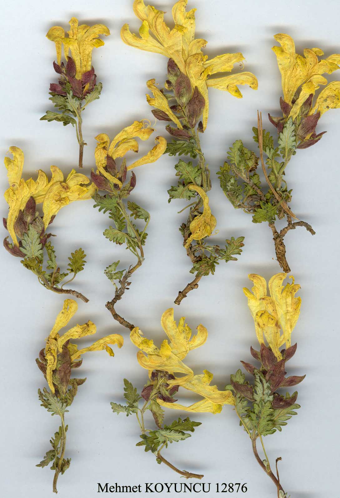 A very variable suffrutescent perennial herb, usually repent at base. Stems 5-45 cm, obscurely tetragonal. Leaves distinctly petiolate, lamina ovate-elliptic to linear, 5-30 mm, usually obtuse, cuneate or attenuate (rarely truncate) at base, (with rare exceptions) 1.5-2 x as long as broad, weakly crenate to incised-pinnatifid or pectinate-pinnatifid, glabrous to densely canescent-tcmentose, often markedly discolorous. Inflorescence a terminal spike with tetragonal ranks of flowers (not secund), usually dense with ± imbricate bracts; bracts very variable in size and shape but often either pale greenish or deeply purple-tinged, sessile. Corolla 20-32 mm, usually yellow, sometimes reddish-spotted or with red upper or lower lip or entirely pink, bright red, brick-red or purplish, ± pubescent. Nutlets oblong, tomentellous. A polymorphic complex extending from Spain and N.W. Africa to Sinkiang. The following 16 subspecies have been recognised mainly by a combination of characters of habit, height and mode of branching of stem, shape and degree of incision of leaves, leaf indumentum, size and shape of bracts and corolla colour. Where appropriate, the distribution of the subspecies within Turkey has been cited in a parenthesis in the key. Short descriptions are given as a further aid to correct identification. Some material cannot be accommodated within the subspecies as presently delimited, and examples of such specimens have been cited which fall outside the range of measurements etc. given in the descriptions. The existence of such morphological intermediates prompted me to adopt a broad species concept in this group. 1. Cauline leaves at least 4 x as long as broad (Inner Anatolia) m. subsp. santolinoides 1. Cauline leaves less than 4 x as long as broad 2. Leaves pinnatifid, divided at least to midway to midrib 3. Lower bracts pinnatifid to dentate; stems to 25 cm tall (S.E. Anatolia) j. subsp. pichleri 3. Lower bracts entire, rarely lowermost pair with 1-2 teeth; stems not exceeding 20 cm tall 4. Leaves pectinately lobed with narrow linear segments, divided almost to midrib, strongly discolorous, greenish above, whitish beneath (N.E. Anatolia) c. subsp. sosnowskyi 4. Leaves divided to distinctly short of midrib, lobes ± revolute, con-colorous or weakly discolorous, greenish above and beneath (widespread) h. subsp. pinnatifida 2. Leaves serrate, crenate or crenately lobed, divided to less than half-way to midrib 5. Lamina of median cauline leaves not more than 8 mm (rarely more); plant prostrate, mat-forming 6. Margins of leaves subacutely serrate; calyx densely sericeous (S.E. Anatolia) k. subsp. porphyrostegia 6. Margins of leaves obtusely lobed; calyx not sericeous 7. Plant greyish-incanous; margins of leaves often strongly recurved; corolla dusky crimson with yellow lower lip, rarely yellow (medium altitudes) g. subsp. pectinata 7. Plant ± greenish, not incanous; margins of leaves not strongly recurved; corolla yellow, lower lip sometimes reddish-tinged (widespread at high altitudes) i. subsp. alpina 5. Lamina of cauline leaves more than 8 mm (except uppermost); plant prostrate to erect, mat-forming or not 8. Leaves markedly discolorous, silvery-tomentose beneath (N.E. Anatolia) b. subsp. orientalis 8. Leaves concolorous or somewhat discolorous, not silvery beneath 9. Stem 20-45 cm, erect; bracts lanceolate to ovate, ± falcately curved upwards 10. Inflorescence lax; lamina lanceolate to oblong, 3-4 x as long as broad (E. Anatolia) n. subsp. sintenisii 10. Inflorescence dense; leaves 1.5-2.5 x as long as broad 11. Stem 20-35 cm, usually branched at base; leaves sparsely tomen-tellous above and beneath, margins shallowly dentate; bracts concave, not keeled (S.E. Anatolia) p. subsp. bornmuelleri 11. Stem 30-42 cm, usually branched in upper third; leaves densely tomentose to canescent beneath, margins crenate; bracts keeled (E. Anatolia: Mesopotamia) o. subsp. haussknechtii 9. Stem to 20 cm, prostrate or ascending; bracts broadly ovate to orbicular, not falcately curved upwards 12. Leaves dimorphic, lowermost linear-oblong with revolute crenat-ions, densely greyish-hairy, cauline triangular-ovate (S.W. Anatolia) 1. subsp. carica 12. Lowermost cauline leaves similar to the rest, not densely greyish-hairy 13. Leaves glabrous (mainly S.E. Anatolia) a. subsp. virens 13. Leaves ± puberulous to tomentellous at least beneath 14. Lower surface of leaves evenly hairy on and between veins 15. Leaves ± concolorous (mainly S.E. Anatolia) a. subsp. virens 15. Leaves discolorous (E. Anatolia, mainly Anti-Taurus) d. subsp. bicolor 14. Lower surface of leaves unevenly whitish-hairy, with distinctly fewer hairs on veins 16. Stems prostrate, 5-15 cm; petiole to 20 mm (Inner Anatolia) e. subsp. macrostegia 16. Stems ascending to erect, 10-20 cm; petiole 3-5 mm (E. Anatolia: Mesopotamia) f. subsp. cretacea subsp. alpina (Boiss.) O. Schwarz in Feddes Rep. 26:13 (1934). Syn: S. orientalis L. var. alpina Boiss., Fl. Or. 4:682 (1879)! Figure 3. Stems tomentose, 4-12(-14) cm, prostrate, much-branched in lower part, often mat-forming. Leaves with petioles to 15 mm, lamina elliptic-ovate to narrowly triangular-ovate, 5-10 x 2.5-8 mm, crenately incised usually to less than half-way to midrib, finely puberulous or glandular above, whitish-tomentose beneath, eglandular or densely glandular-hairy. Inflorescence short, dense, few-flowered; bracts purplish or pale green, 4-7 mm, ovate. Corolla yellow, 20-3 1 mm. Fl. 6-8. 1. Stem, leaves, bracts and calyces eglandular or with very scattered glandular hairs var. alpina 1. Stem, leaves, bracts and calyces copiously glandular-hairy var. glandulosissima var. alpina. Syn: S. microstegia Bornm. in Feddes Rep. 49:250 (1940); S. araratica Grossh. in Izv. Azerb. Fil. Akad. Nauk SSSR 3:84, t. 18 (1945)! Map 13. Montane steppe, clearings in Quercus scrub, mainly on limestone, 1000-2440 m. Lectotype (chosen here): Turkey C5 Içel: in glareosis orienti soli oppositis montis Gisyl D