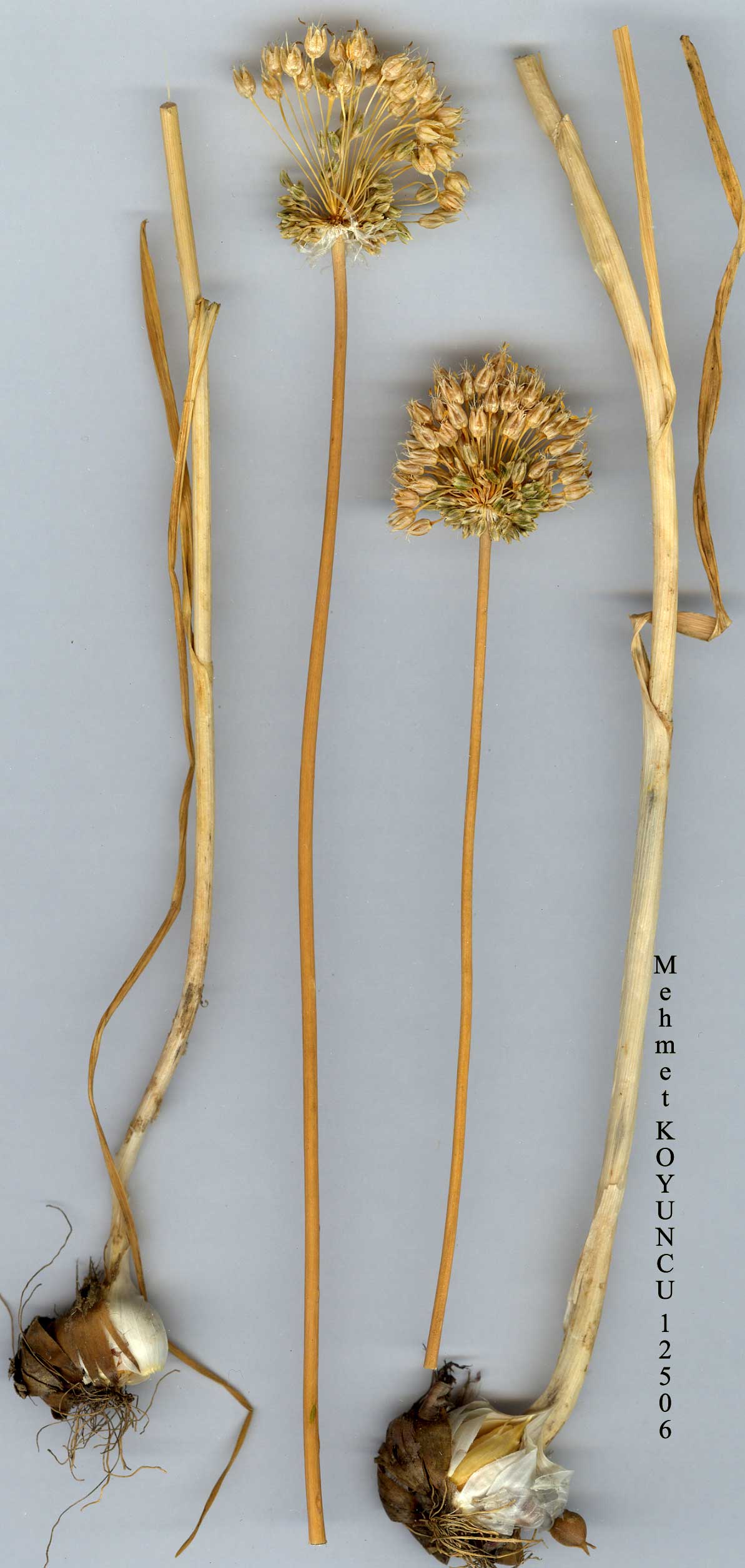 | A. trachycoleum Wendelbo in Bot. Not. 122:35, f. lH (1969). Ic: Rech. fil., Fl. Iranica 76: t. 5 f. 78 (1971); Israel J. Bot. 26:134, f. 2 (1979). Figure 6. Map 22. Bulb c. 1.5-2 cm diam.; outer tunics blackish, breaking up into fibres; bulb-lets 0.7-1 cm, yellowish-brown, shining. Stem c. 80 cm. Leaves 5, 3-4 mm broad, flat, canaliculate with scabrid veins; sheaths scabrid. Spathe caducous.Umbel spherical, 2.5-5 cm diam., dense. Pedicels unequal, outer with laciniate bracteolesc. 1 cm. Perianth urceolate-campanulate; segments white or greenish-white, 4-5(-6) mm, outer ± narrowly elliptic-ovate, usually ± scabridulous-papillose on back and margin, obtuse, inner ovate, glabrous, subtruncate at apex. Filaments longer than segments; median cusp of inner ones shorter than lateral cusps and half as long as basal lamina. Style exserted. Capsule globose, 3 mm, included in perianth. FL 6-7. Quercus forest, meadows, dry stony slopes, 1050-2100 m. Type: [Iraq] Mosul, ad confines Turciae prov. Hakari, inter Dohuk et Amadiya, in quercetis saxosis supraSirsank, 1200m, 10-12 vii 1957, Rechinger 11901 (holo. W!). S. & S.E. Anatolia; very scattered. B5 Adana: Bakir Da,, 2000-2100 m, Çelik (AEF 5692)! C7 Adiyaman: 83 km from Adiyaman to Çeiikhan, I050 m, Kit-Tan 2058! CI0 Hakkari: d. Şemdinli, Ümit Tepesi, 1800 m, T. Baytop (lSTE 26087)! nr Yüksekova, 1900 m, A. & T. Baytop (lSTE 46758)! Jordan, Lebanon, N. Iraq. Ir.-Tur. element. The Turkish plants differ from the holotype in having a relatively smaller perianth (4-4.5 mm) and more ex-serted filaments. They are rather similar to a specimen collected in Iraq near Zawita (Al-Rawi 23593!) which Wendelbo (mss.) considers as being intermediate between A. trachycoleum and A. qaradaghense. |