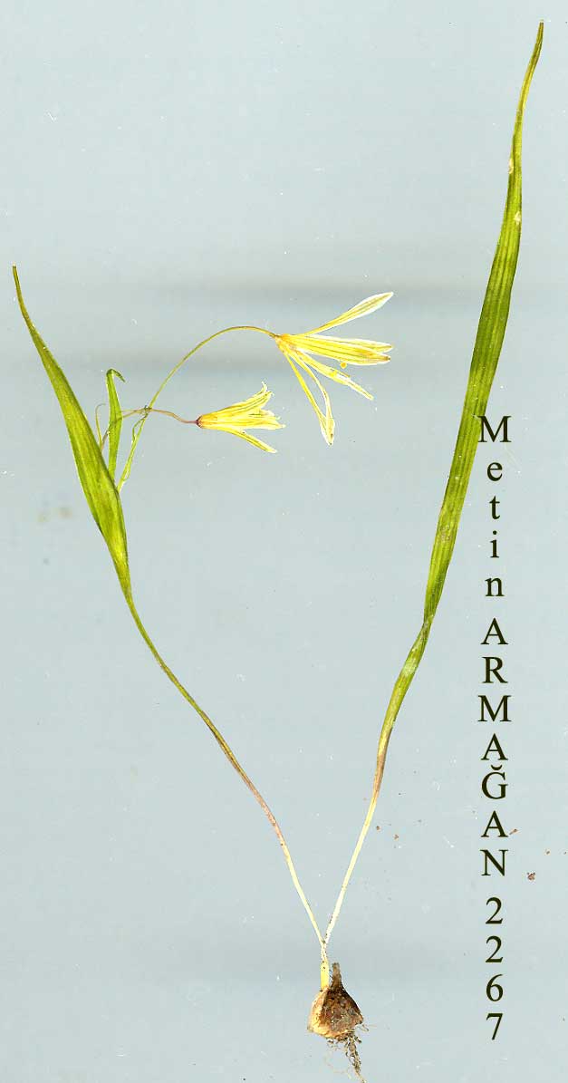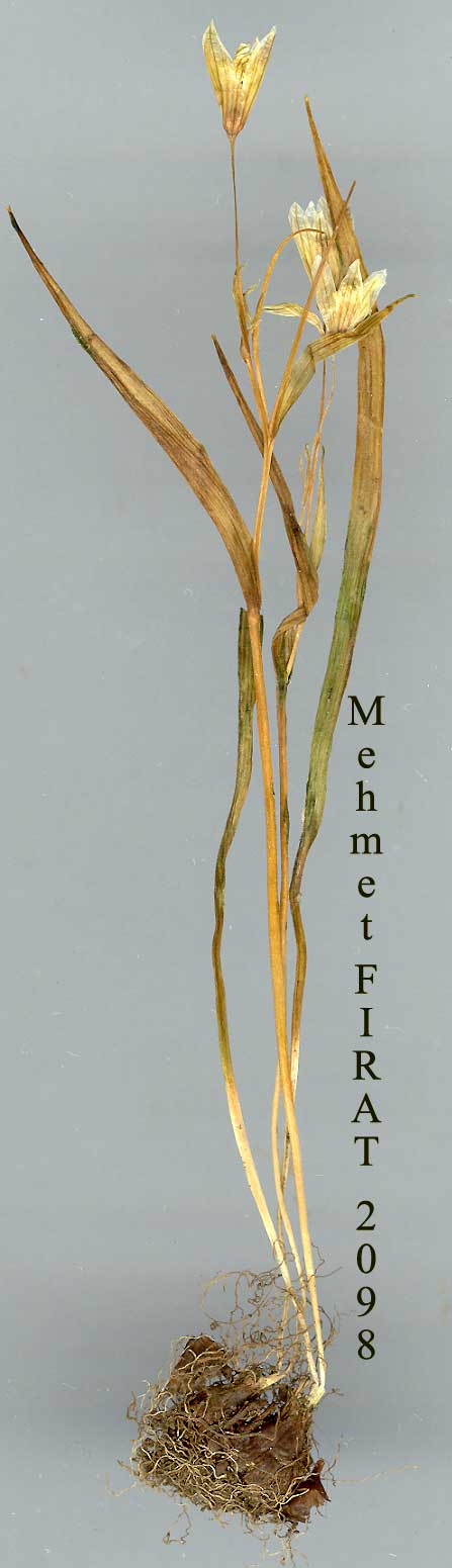 G. confusa Terracc, in Boll. Soc. Ort. Palermo ser. 2, 3:5 (1904). Syn: G. minimoides Pascher in Sitz.-Ber. Deutsch. Naturw.-Med. Ver. Böhm. 'Lotos* n.s. 24:126(1904)! Ic: Davliarddze, op. cit. t. 28(1976); Rix & Phillips, Bulb Book 75(g) (1981). Bulbs with dark brown tunics, new bulb arising inside old, with several dark-tunicated bulblets c. 1 mm. Basal leaf 1, narrowly lanceolate, 7-15 x0.2-0.4 cm, fiat, glabrous, longer than inflorescence. Inflorescence 4-16 cm, glabrous; branching usually corymbose from above lowest bract, but on large specimens with cauline leaf subtending a 1-flowered branch. Cauline leaf 1, lanceolate, 2.5-8 x 0.3-1 cm, amplexicaui, equal to or shorter than pedicels, glabrous or with scattered crisped hairs; bracts and bracteoles lanceolate to lisear. Flowers 1-7, conical or rather narrow at base. Pedicels nodding in bud, 2-.56 cm, not elongating in fruit, glabrous. Perianth segments greenish or reddish outside, yellow inside, 8-15 x 2-6 mm, obtuse. Capsule 3-7 x 4 mm, obovate. Fl. 5-8. Bare soil and turf by snow patches, shady rocks, 1800-3660 m. Type: [Iran] in jugo Charsan prope Kaswin, 28 iv 1882, Pichier (iso. K.!). Mainly E. Anatolia. B9 Van: gorge by bridge c. 12 km W. of Ho§ap, 1800 m, Rix Î906! BiO Ağri: Doğubayazit, Bubu to Ipagli, Schischkin. C5 Niğde: Ala Da., Ulupinar, 2400 m, Carle & Kürschner 79-421! C9 Hakkari: Cilo Da., 3660 m, D. 24177! CIO Hakkari: Vadinasor Tepe, 2300 m, Watson 5626! Caucasia, Iran, N. Iraq, C. Asia (Turkmenia). Ir.-Tur. element. Related to the European G. minima (L.) Ker-Gawler. |