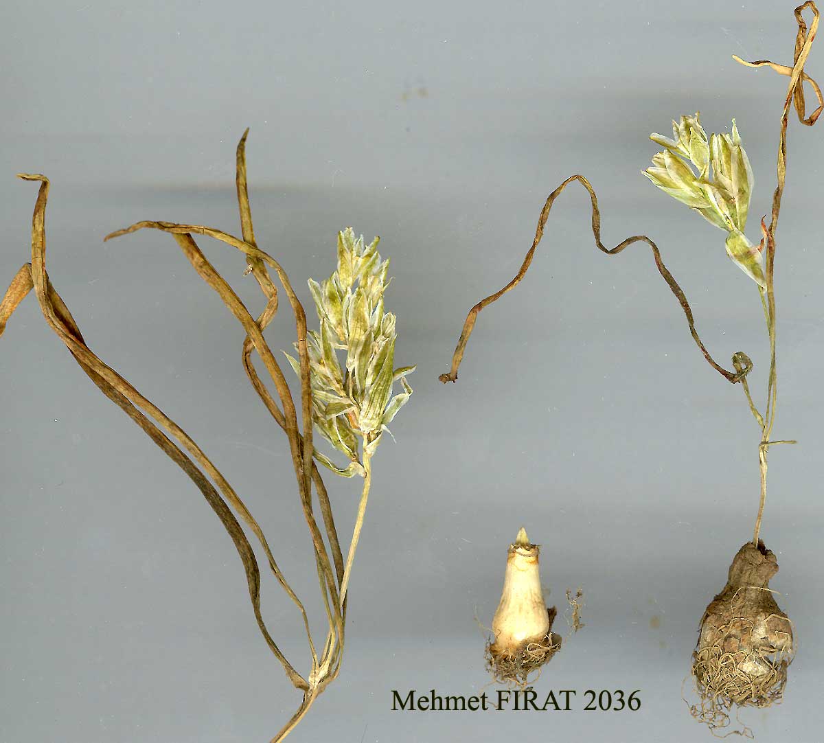 | O. orthophyllum Ten., Fl. Nap. 4, Syll. App. 3:4(1830). Syn: O. tenui-folium auct. mult, non Guss. (1827); O. byzantinum Aznav. in Bull. Soc. Bot. Fr. 46:149 (1899)! Ic: Hegi, 111. Fl. Mittel-Eur. ed. 2, 2(2): f. 548 (1959). Figure I J. Scape (5-)10-30 cm. Leaves several, exceeding scape, linear to filiform, 1-5 mm broad, with a white line on upper surface, margins usually entire, rarely somewhat denticulate, glabrous. Raceme corymbose, with (4-)10-20 flowers. Perianth segments 12-18 mm or more, white inside, white with a green fascia outside. Fruiting pedicels spreading or slightly arcuate-erect, rarely somewhat drooping, 20-35 mm. Capsule unwinged. 2n-16. Fl. (2-)4-6(-8). Scrub, woodland, meadows, s.l.-2170 m. Type: [Italy] in pascuis montosis Aprutii: Montegrande presso Pizzoli, Tenore (nolo. NAP). Widespread. A1(E) Kirklareli: Mahya Da., 1030 m, A. Baytop (ISTE 13254)! A2(E) Istanbul: Kiathane (Kağithane), 1 vi 1895, Azn.(syntype of O. byzantinum)] A4 Kastamonu: W. of Kastamonu towards Safranbolu, 1200 m, Pasche et al. MPR 79/33! A5 Sinop: Ince Burun,Gerne,20m,Tobey 1711! A6 Samsun: 120 km E. of Samsun, 60 m, Grey-Wilson & Hewer 11! A7 Trabzon: Trabzon, 50 m, Stainton 8124! A8 Rize: Rize, Çayeki, Guichard TUR/35/59! A9 Kars: Kağizman, 1300-1500 m, Güneş, 1024! Bl lzmir: Nif Da. above Kemalpaşa, Alava 4853 et al.! B4 Ankara: Tuz G., 10 km S. of Şereflikoçhisar, 950 m, Coode & Jones 160! B5 Yozgat: Himmetdede to Boğazliyan, 1200 m, Coode & Jones 1452! B6 Sivas: E. flank of Tantali Da., 2000 m, Watson 5551! C2 Muğla: Sandras Da., 1000-1700 m, Seçmen 1591 (EGE 17311)! C3 Antalya: Kemer, 2000-2200 m, Peşmen & Güner 4281! C4 Antalya: Gündoğmuş, 1500 m, Çetik 3956! C5 lçel: Mersin, 1100 m, Uslu 1330! C6Maraş: Ağca Da., 1700 m, Sorger 73-15-51! C8 Mardin: 5 km E. of Mardin, 1200 m, D. 28595 (2n = 16)! C10 Hakkari: 20 km N. of Yüksekova, 2170 m, Trelawny & McPhail 2042! Is: Lesvos, 1 km W. of Ayiassos, 550 m, Edmondson & McClintock 2232! Rodhos, Kamiros, Burbidge 168! S. & C. Europe, N. & N.W. Iran, Caucasia; Morocco (subsp. kochii var. elongatum Maire). O. orthophyllum is a variable species divided by Zahariadi (Fl. Europaea 5:39,1980) into 6 subspecies. All the Turkish material appears to belong to subsp. kochii (Parl.) Maire & Weiller (Fl. d'Afrique du Nord 5:180, 1958), but further research is necessary on the variation of the species in Turkey before this can be established. Maire & Weiller's combination is earlier than Zahariadi's identical one made in Bot. J. Linn. Soc. 76:357 (1978). O. woronowii Krassch., a mainly Caucasian species, is recognised by Zahariadi and is mapped for E. Anatolia by Grossheim (Fl. Kavk. 2: map 192); O. transcaucasicum Miscz. is similarly recorded by Grossheim (op. cit.,map 194). The differences between these and O. orthophyllum are very slight, and further study of living material is desirable. O. undulatum Zahar. in Bull. Soc. Bot. 128: Lettres Bot. 304 (1981) has been recently described on the basis of Sint. 1892:4656 from A5 Kastamonu, Tosya. This is reputed to differ from O. orthophyllum in characters of seed morphology and germination. |