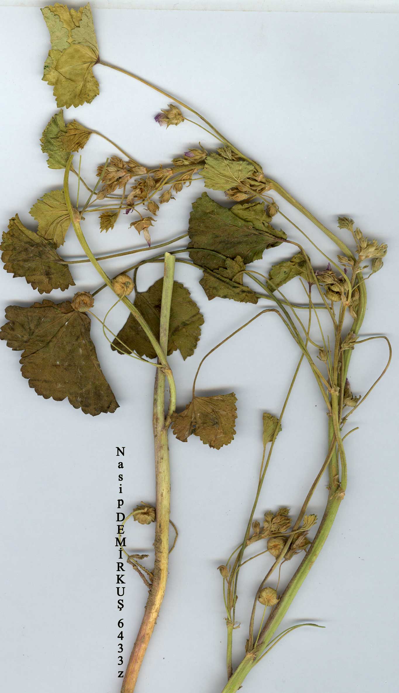 M. pusilla Sm. in Sowerby, Engl. Bot. 4: t. 241 (1803). Syn: M. borealis Wallm. in Liljebl., Sv. Flora ed. 3, 374 (1816); M. rotundifolia L., Sp. PL 689 (1753) p.p. Annual. Stems ascending to erect, spreading-pilose with simple and stellate hairs. Leaves ± orbicular, crenate. Flowers borne in fascicles in the leaf axils. Epicalyx segments linear. Sepals broadly triangular. Petals hairy at the base, pale lilac, c. 8 mm, scarcely exceeding the sepals. Mericarps with smooth adjacent margins. Pedicels defiexed in fruit. Fl. 6. Type: [Britain] Kent, Hythe, Hudson. A2(E) Istanbul: Zekerieköy, 18 vi 1899, Azn.! Is: Patmos, Townsend 63/97. Europe (rare in S), Caucasia, N.W.. Iran. |