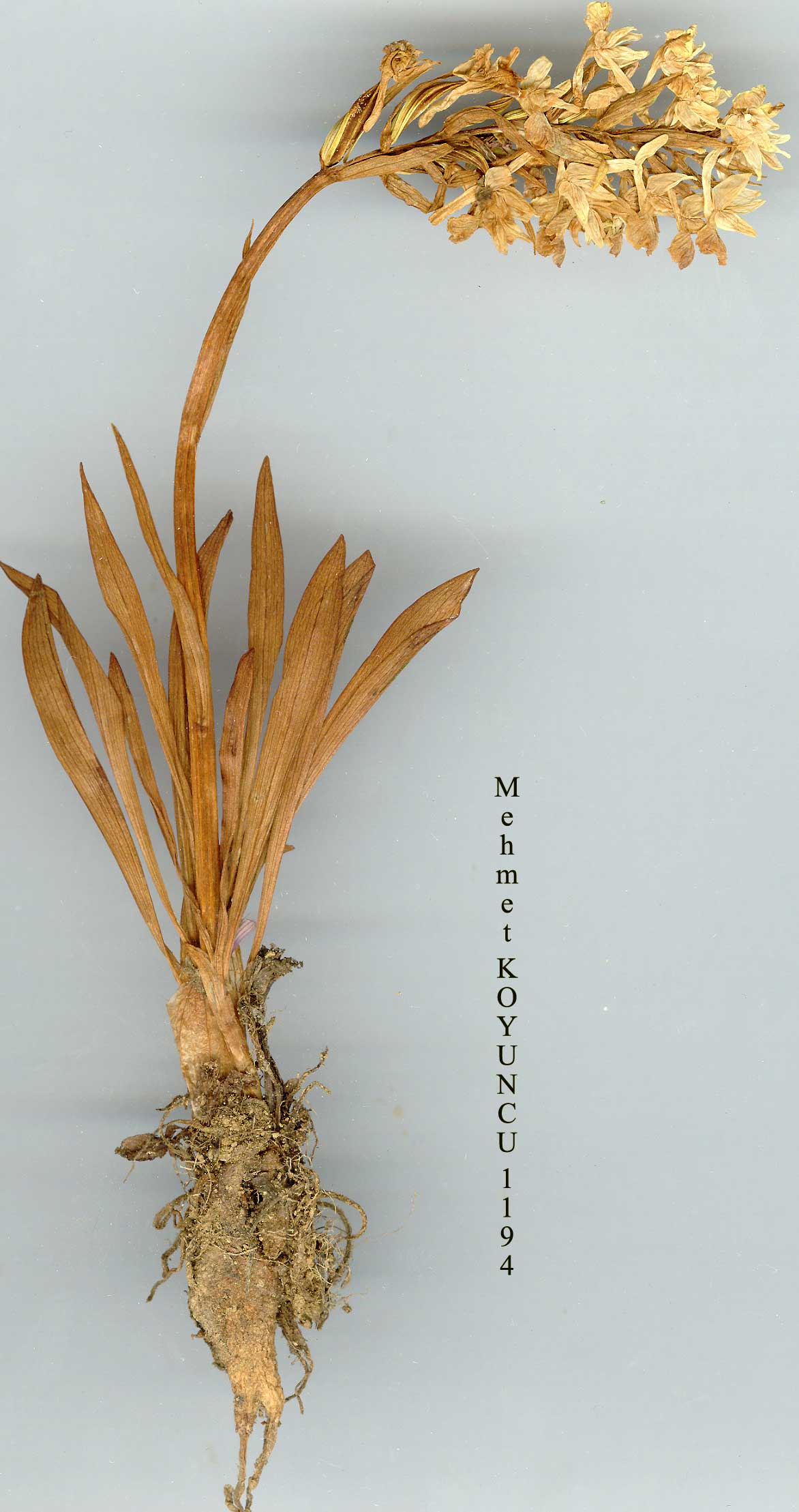 D. flavescens (C, Koch emend. Nevski) H. Baumann & Künkele in Mitt. Bl. Arbeitskr. Heim. Orch. Baden-Württ. 13:237 (1981). Ic: Reichb. fil., Ic. Fl. Germ. 13/14: t. 62 f. I (1851), as O.flavencens ;Nieschalk in Philippia 3:103, f. 2 (1976); Renz in Rech. fil., Fl. Iranica 126: t. 49 (1978). Map 105. Fl. (4-)5-6. Coniferous forest and forest margins, Quercus scrub, alpine meadows, 20-2000 m. Described from Caucasia. N. & E. Anatolia. A5 Samsun: nr Bafra, c. 20 m, Guichard T/59/59! A6 Ordu: nr Meşudiye, 1500 m, Mathew & Tomlinson 4385! A7 Gümüşane: S. side of Zigana pass, 1900 m, Taub. 78.290! Trabzon: Zigana Da., 1800-1900 m, Guichard TUR/99/62! A8 Çoruh: Tiryal Da., 1850 m, Düzenli 712! A9 Kars: N.W. of Kars, Karabagh, Fischer! B6 Sivas: Kaynarca, between Gürün and Piaarbaşi, 1650 m, Renz & E. Sezik 12982! B8 Siirt: Sasun Da., above Seyhan and Sason, 1250-1850 m, Watson et al. 1255! B9 Bitlis: Kizvak Da., 9 km N.E. of Tatvan, 1950 m, Watson et al. 1325! B10 Kars: Doğubayazit to Iğdir, 2000 m, Rix 2004! Caucasia, N. Iran, Turkestan. Euxine element. In the area where the two subspecies meet in N. Anatolia — mainly between 36° and 38° E — transitional forms occur which may be difficult to distinguish, since the development of the spur may not be as characteristic as described in the key. Examples include: A5 Sinop: Ince Burun, 30 m, Tobey 1642! A6 Samsun: c. 3.5 km E. of Sam-sun, 60 m, Tobey 53! B5 Yozgat: Akdağmadeni, Aktaş, Curtis 139! In the Colonic region of Anatolia (and in Transcaucasia, where the red form of subsp. georgica was referred to Orchis tenuifolia C. Koch), red and yellow flowered plants of subsp. georgica frequently grow together. Baumann & Künkele (Mitt. Bl. Arbeitskr. Heim.Orch. Baden-Württ. 13:237, 1981) give reasons for maintaining the specific rank of this taxon. The smaller labellum and shorter, mainly horizontally oriented spur are the most distinctive characters. Considering their close relationship and the above-mentioned intermediates, we prefer to treat the N.E. Anatolian and Caucasian plants at subspecific rank. Averyanov (op. cit. 537, map 4,1983) described the new taxon D. ruprech-tii Aver., originating from Caucasus (Type: inter Wladikawkaset Tiflis, Kaisch-aur, 910 hexap. [c. 1700 m], in pratis turfosis, 11 v 1861, Ruprecht (holo.LE)). In the accompanying distribution map this plant is also recorded from A8 Çoruh: near Artvin, According to the description of the Caucasian plant, it may well be an ecological response to alpine conditions, which is not unusual for a plant growing in a wide range of altitudes. |