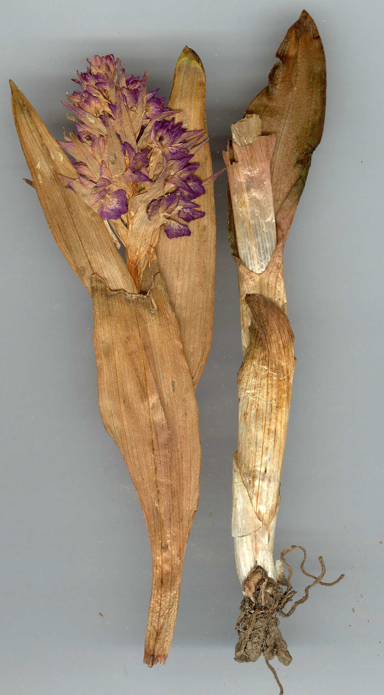 broadly lanceolate or lanceolate, (8-)10-15(-18) x 2-4(-5) cm, sometimes folded. Spike cylindrical, dense, 8-20(-30) cm. Bracts lanceolate, lower exceeding the purplish, rarely creamy-white flowers. Sepals and petals ovate-lanceolate, subobtuse; sepals 9-12 x 4-5 mm, petals slightly shorter. Labellum mostly entire, sometimes subentire, suborbicular, 7-10(-12) x 9-12(-15) mm,with darker coloured interrupted loops and spots. Spur conical-acute, shorter than ovary, 5-8(-l 1) mm, 3-4 mm broad at base. 1. Plants 20-60 cm; stem solid (small plants) or slightly hollow, with 4-6 usually ± flat leaves; spike(5-)8-12 cm, dense; flowers purplish or rose-purplish, rarely white var. osmanica 1. Plants stout, very large, 60-100(-120) cm; stem hollow, with 8-10 usually . folded leaves; spike (12-)15-24(-30) cm, very dense; flowers dark purplish, sometimes creamy-white var. anatolica var. osmanica. Syn: Orchis incarnata auct. non L. (1755); O. incarnata L. var. olocheilos Boiss., Fl. Or. 5:71 (1882) p.p.; O. orientalis Kl. subsp. cilidca Kl. in Acta Horti Petrop. 17:187 (1898) p.p.! O. orientalis Kl. subsp. osmanica Kl., op. cit. 188 (1898); O. osmanica (Kl.) Lipsky, FL Kavk. 457 (1899);O. incarnata L. subsp. osmanica (Kl.) E.G. Camus, Monogr. Orchid. 179 (1908); O. cataonica Fleischm.in Ann. Nat. Hofmus. Wien 28:34, f. 6,t.2f. 1 (1914)! O. olocheilos (Boiss.) Soo in Feddes Rep. 24:30 (1927) p.p.! O. cilicica (Kl.) Schlechter in Feddes Rep. Sonderbeih. A, 1:178 (1927) p.p.! O. olocheilos (Boiss.) Soo var. osmanica (Kl.) So6 in Bot. Archiv 23:73(1929); Dactylorhiza cilicica (KL) So6 in Ann. Univ. Sci. Budapest, Biol. 3:340 (1960) p.p.! D. cilicica (Kl.) P.F. Hunt & Summerhayes in Watsonia 6:130 (1965) nom. superfl.! D. cataonica (Fleischm.) Holub in Preslia 36:252 (1964)! D. incarnata (L.) So6 subsp. cilicica (Kl.) Sunderm., Europ. Medit. Orchid, ed. 2:45 (1975) p.p.! Ic: Schlechter, op. cit. t. 17 f. 68 (1927), as O. cilicica; Nieschalk in Philippia 2:232, f. 7, above (1975);Nelson, Monogr. Ikonogr. Dactylorhiza t. 1, t. 81 f. 1-5 (1976). Map 107. Fl. 6-7. Marshy places, wet meadows, forest margins, by streams and springs, 550-2400 m. Type not indicated. N., C. & S. Anatolia. A5 Samsun: 8 km from Havza to Vezirköprü, 800 m, Taub. 81.323! A6 Sivas: Şerefiye Y., Suşehri to Zara, 1550 m, Hub.-Mor. 11903! A8 Gümüşane: 23 km N. of Aşkale towards Trabzon, 2390 m, Uotila 19632! B5 Nevşehir: nr Sultanhani, 900 m, Mangold & Taub. 81.80! B6 Maraş: Binboğa Da., 2200 m, D. 20012! B7 Erzincan: Ahmediye nr Erzincan, 2100 m, Renz & Taub. 12092! B8 Erzincan: Erzincan to Aşkale, W. of pass, 2000 m, Renz & Taub. 12100! C4 Konya: Geme forest, S.W. of Hadim, 1750 m, Renz 2947! C5 Adana: mt. Kassan Oghlu, nr Gûrümze, 1300 m, Kotschy 1859:22! C6 Hatay: Sogukoluk to Karlik Tepe, 1000 m, Hub.-Mor. 11899! C7 Adıyaman: Ak Da. between Kahta and Malatya, 2400 m, Hand.-Mazz. 2367 (type of O. cataonica)! Endemic. Ir.-Tur. element? |