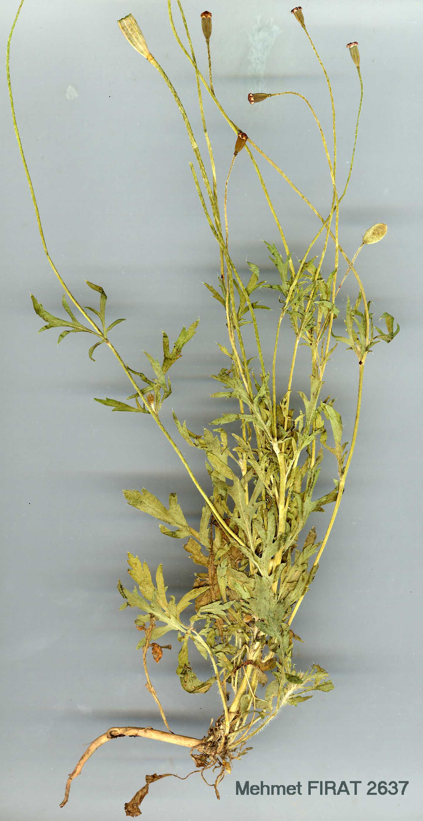 P. rhoeas L., Sp. PL, 507 (1753). Syn: P. strigosum (Bönn.) Schur in Phytog. Mitteil. in Ver. Nat. Ver. Brünn., 15(5): 66 (1877). Ic: Reichb., Ic. Fl. Germ., 3: t. 15, f. 4470 (1838-39). Figure 8, p. 223. Stems erect, up to 90 cm. Leaves variable, usually pinnatifid or pinnatisect, the segments dentate, the terminal segment lanceolate, much longer than the lateral segments. Peduncles spreading-hispid, rarely adpressed-setose. Petals red to crimson, rarely white, with or without a blotch at the base, very variable in size. Capsule glabrous, globose to subglobose, rounded at the base, about twice as long as broad. Disc flat with up to 18 stigmas. Fl. 3-8. Fields, waste places, etc., s.l.-1400 m. Described from Europe (Hb. Linn. 669/6!). Widespread. A1(E) Tekirdağ: Edirne to Istanbul, 50 m, Dudley, D. 34505! A1(A) Çanakkale: Erenköy, Sint. 1883:303! A2(E) Istanbul: San Stephano (Makriköy), Azn.! A2(A) Istanbul: Prinkipo (Büyükada), Azn.! A3 Bolu: Ala Da., 700 m, Khan et al. 561! A5 Amasya: Amasya, Bornm. 148b. A6 Samsun: Samsun, Hand.-Mazz. 140. A7 Trabzon: Maçka (Cevizlik), 700 m, Balls 1610! B3 Eskişehir: Eskişehir to Kütahya, 800 m, Dudley, D. 36064! B7 Elaziğ: Har-put, 1320 m, Hub.-Mor, 9206! B8 Erzurum: Erzurum, Zohrab! C2 Antalya: Kalkan, 30 m, D. 25495! C3 Antalya: Serik to Manavgat, 20 m, Hub.-Mor. 10381! C4 Içel: Gilindere to Gülnar. 690 m. Hııb.-Mor. 10380! C5 Seyhan: Ceyhan to Erzin, 30 m, Hııb.-Mor. 13930! C6 Gaziantep: Gaziantep. 900 m, Balls 869! Is.: Lesvos, Rech. 9156; Khios, Rech.; Samos, Rech. 2132; Rodhos, Rech. 7415. Temperate Eurasia, N.W. Africa. A very variable species. |