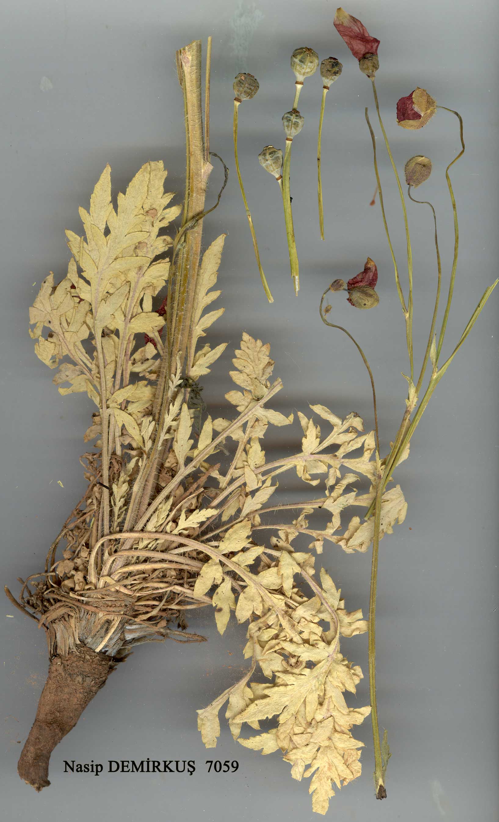 P. tauricola Boiss., Fl. Or., 1: 109(1867). Syn: P. hyoscyamifolium Boiss. & Hausskn. in Boiss., Fl. Or., 1 : 110 (1867) p.p. Figure 8, p. 223. Stems paniculately branched, leafy, 30-40 cm, sparsely spreading-setose. Leaves pinnatisect with oblong, entire or irregularly serrate segments, hispid-setose. Buds hispid with long, orange-brown hairs. Capsule ovate-globose, rounded at the base, covered with long, white adpressed bristles springing from the base, or glabrous (var. leiocarpum (Boiss.) Fedde). Disc acutely pyramidal. Fl. 6-8. Screes and rocky slopes, 1100-2800 m. Many syntypes cited from Anatolia. E. Anatolia, Cilician Taurus and Anti-Taurus. Taurus mountains, Kotschy 14 (isosyntype): A8 Erzurum: Horasan to Karaurgan, 2000 m. D. 29500! B5 Kayseri: Bakır Da., 1700 m, D. 19404! B6 Maraş: above Elbistan, 1200 m, Stn. & Hend. 5666! Sivas: Tecer to Gürün, 1800 m. Hub.-Mor. 13937! Seyhan: Bakir Da. to Saimbeyli, 1850 m, Hub.-Mor. 10939! B7 Tunceli: Tunceli to Pülümür, 1100 m, D. 29234! B9 Bitlis: W flank of Nemrut Da., 2000 m, D. 23590! C5 Içel: Cilician gates (Gülek Boğaz), Bal. 429! Niğde: Masmoutli Da., Solakli, 2000 m, Siehe 1906: 465! C6 Malatya: Sürgü to Perveri, 1340 m, Hub.-Mor. 13938! Seyhan: Yağlipinar, S of Yarpuz, 1500 m, Hub.-Mor. 15243! N. Iraq, Iran. Possibly not distinct from the Iranian P. persicum Lindl. The glabrous-fruited variant (var. leiocarpum) links this species to the next. |