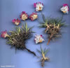 | A. bracteatum (Girard) Boiss., Diagn. ser. 1(7):70 (1846). Figures 15 & 16. Compactly pulvinate shrublet. Spring leaves to 30 x 3 mm, flattened; summer leaves narrowly lanceolate, 20-50 x 1.5-2.5 mm, piano-triquetrous, margins scabrid. Scapes simple, equalling to greatly exceeding leaves. Spike-lets 6-10, 2-5-flowered, 4-6-bracteate. Outer bract ovate to suborbicular, 8-12 mm, slightly exceeding calyx tube, with broad hyaline margin, herbaceous centre terminating in 1-2 aristae; first and second inner bracts broadly obovate, shorter than outer, hyaline except for base and vein; vein produced into a short recurved arista just above middle of bract; innermost bracts (1 per flower) smaller and hyaline. Calyx infundibular, tube sparsely pilose, limb ± truncate. Petals bright pink. Fl. 6-8. Rocky slopes, montane steppe, 1700-3100 m. 1. Calyx purple; veins not excurrent var. bracteatum 1. Calyx white; veins ± excurrent var. capitatum var. capitatum (Sosn.) Bokhari in Notes R.B.G. Edinb. 30:300 (1970). Syn: A. capitatum Sosn. in Monit. Jard. Bot. Tiflis 11:11 (1915)! A. scabiosum Mobayen, Revis, Taxon. Acanthol. 298, f. 20 (1964)! Map 60. Type: [Turkey A8 Erzurum] prov. Kars, distr. Oltu, inter pp. Karnawaz et Lespek, 8 vii 1911, Sosnowsky (holo. TBI, photo, E! iso. K!). E. Anatolia. A8 Erzurum: Aras gorge, 1700 m, Tobey 2091! A9 Kars: Killik Da. W. of Akçay to Cumaçay road, 2250-2500 m, Watson et al. 3392! B9 Bitlis/Van: Pelli Da., 2500-3000 m, Edmondson 638! B9 Van: d. Çatak, Kavuşşahap Da., 3100 m, D. 23144 (type of A. scabiosum)! ibid., 2860 m, Watson et al. 3573! |