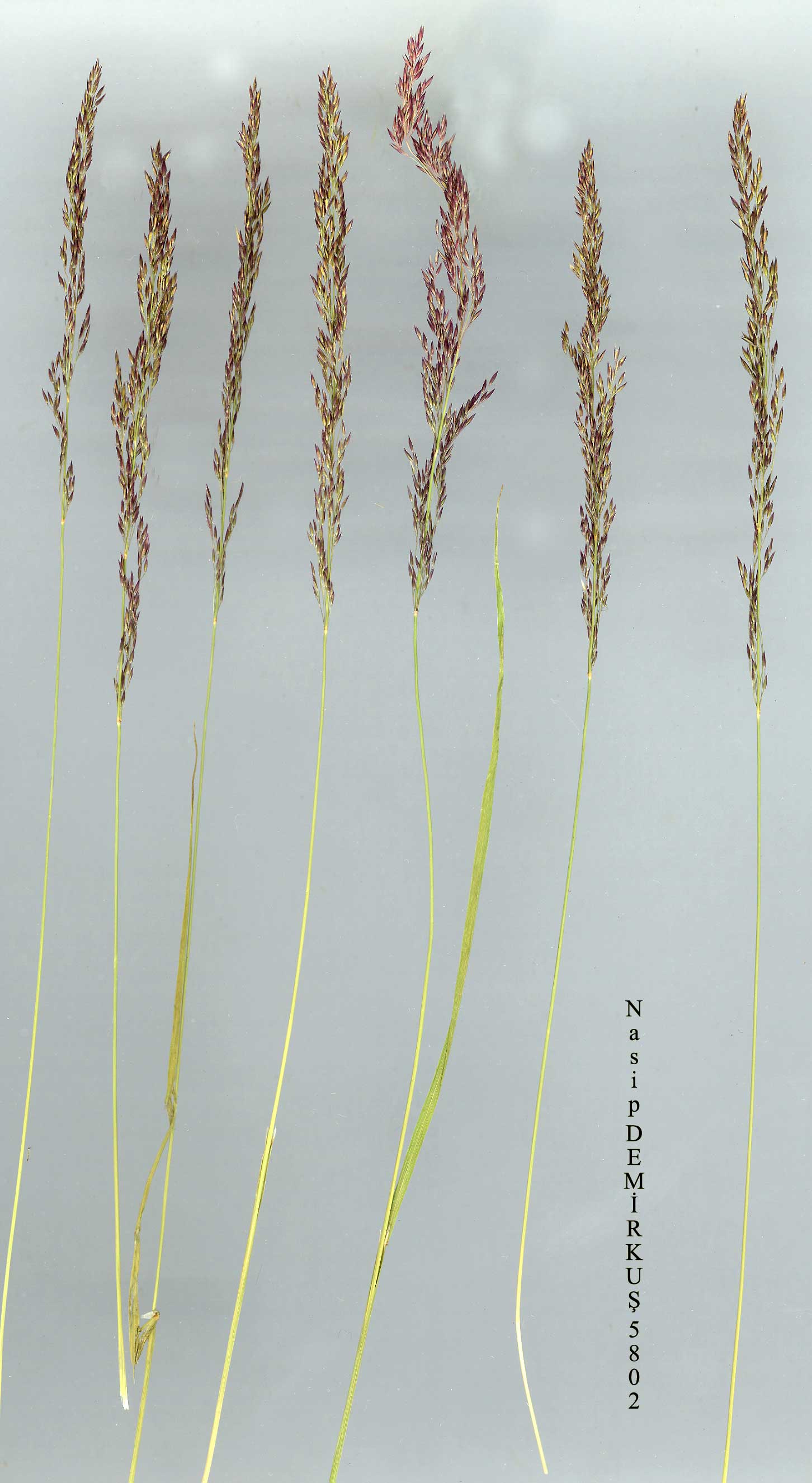 A. stolonifera L., Sp. PL 62 (1753). Syn: A. alba auct. non L. (1753); A scabriglumis Boiss. & Reuter, Pug. Pl. Nov. 125 (1852)! A. karsensis Litvinov in Spis. Rast. Gerb. Fl. SSSR 147(1922)! A. alba L. var. armena Schischkin in Izv. Tomsk. Univ. 81:417 (1929); A. alba L. var. karsensis (Litvinov) Schisch-kin, loc. cit. (1929)! Ic: Kulczynski, Atlas Fl. Polsk. 4(2):404 (1932), as A alba;Hubbard, Grasses ed. 2:304(1968). Map 69. Caespitose perennial with numerous long stolons. Stems 30-70(-120) cm, erect to geniculately ascending from base, glabrous and smooth. Leaf sheaths glabrous; ligule l-5(-6) mm, obtuse; blades (l-)4-9(-10) cm x 2-5 mm, linear, acute, usually flat, somewhat involute, smooth to scabrid. Panicle 5-24 x-1-4 cm, linear-lanceolate to oblong; branches patent, to 8 cm, usually aculeolate; pedicels 0.5-2 mm, aculeolate. Spikelets densely clustered, 1.7-3 mm, greenish to purplish. Glumes aculeolate on keel, lanceolate, acute, equal to subequal. Lemma 2/3-3/4 as long as glumes, ovate-oblong, truncate, usually awnless, rarely with a short subterminal awn. Palea 1/3-2/3 as long as lemma. Anthers 1-1.5(-2) mm. Fl. 6-8. Moist meadows, wet places, nr s.l-2390 m. Described from Europe (Hb. Linn. 84/14!). Widespread. A1(E) Kirklareli: Demirköy to Iğneada, A. Baytop (ISTE 5493)! A2(E) Istanbul: Makriköy to Yedikule, 11 vii 1893, Azn.! A2(A) Istanbul: Kartal to Soğanli, 20 viii 1893, Azn.(!). A3 Sakarya: Arifiye, 30 m, D. 36255! A4 Ankara: 2 km S. of Kizilcahamam, 950 m, Sorger 77-59-13! A7Trabzon: d. Maçka, Bekçiler Y.nr Hamsiköy, 1600 m, Anşin (İSTE 31281)! A8 Gümüşane: 23 km from Aşkale to Trabzon, 2390 m, Uotila 14700! A9 Kars: Susuz, 1750 m, D. 30645! Bl Izmir: Bornova, Gençkan 3! B2 Kütahya: Inegöl to Tavşanli, T. Baytop (İSTE 5688a)! B3 Afyon: Bayat, Kurtlaralani-tepe, 1480 m, Vural 78! B4 Konya: Aslim Batakligi nr Cihanbeyli, 900 m, Ekim 3337! B5 Kayseri: Kayseri, 1856, Bal. B6 Maraş: d. Elbistan, Kapidere, D. 20403! B7 Tunceli: Ovacik, 1400 m, D. 31437! B8 Muş: S.W. foot of Bingöl Da., 1900 m, D. 46203! B9 Bitlis: Tatvan, 2010-2134 m, Tong 107! C2 Denizli: Pamukkale, 380 m, Hormia 620 & Leblebici! C5 Adana: d. Feke, Göksu gorge below Himmetli, 700-800 m, D. 19839! C6 Hatay: Amanus, Akman. Is: Imroz (Gökçeada), nr Dereköy, 250 m, Leblebici & Seçmen 1092. Europe, Mediterranean area, S.W. Asia eastwards to Siberia. Introduced in Japan and N. America. Euro-Sib, element. The type of A. karsensis (LE!) proved to be synonymous with A. stolonifera. |