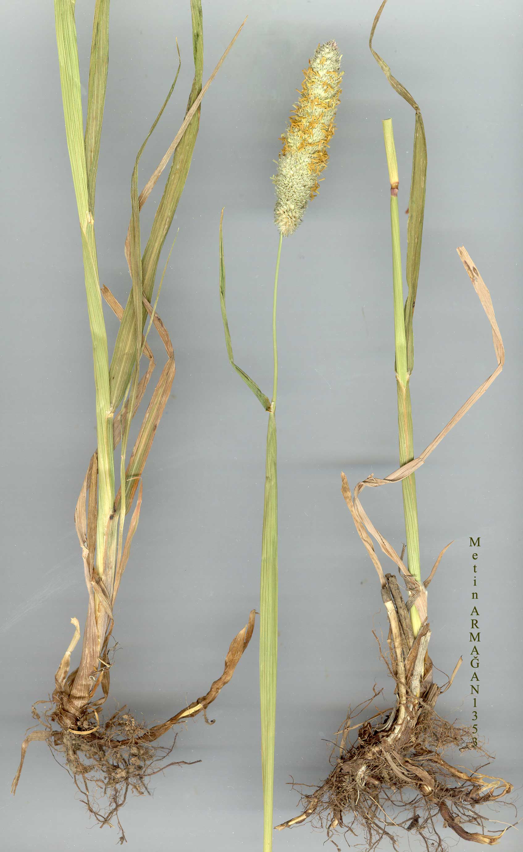 | A. arundinaceus Poiret in Lam., Encyl. 8:776 (1808). Syn:A. ventricosa Pers., Syn. Pl. 1:80 (1805) non Hudson (1778); A. nigricans Hornem., Hort. Hafn. 1:68 (1813)! A. pratensis L. var. armenus C. Koch in Linnaea 21:381 (1848);A. armenus (C. Koch)Grossh., Fl.Kavk. ed. 2, 1:173(1939);A. arun-dinaceus Poiret subsp. armenus (C. Koch) Tzvelev in Novit. Syst. Pl. Vasc. (Leningrad) 8:18 (1971). Ic: Zangheri, Fl.Ital. 2: t. 183 f. 6670(1976). Map 72. Perennial, with creeping rhizomes. Stems 23-105 cm, usually erect, some-times geniculately ascending from base, 2-noded. Leaf sheaths glabrous to slightly hairy, inflated; ligule 1.5-5 mm, obtuse-truncate; blades 2.5-4.5 cm x 3-10 mm, linear, acuminate, scabrid on margins and somewhat on upper sur-face. Panicle 1.7-7 cm x 6-14 mm, broadly cylindrical, green to purplish. Spikelets 3.5-7 mm, urceolate. Glumes lanceolate, acute, diverging at apex, connate for 1/4 of their length, ciliate on keels. Lemma 3.5-5.8 mm, ovate, obliquely truncate, with a subdorsal awn; awn 1.5-7.5 mm, somewhat genic-ulate and twisted below but usually rather slender and variously curved. Anthers 3-3.6 mm. Fl. 4-8. Marshy ground, water meadows, cultivated land, roadsides, ditches, s.1.-3050 m. Type: [France] cette plant est cultivee au Jardin desPlantes de Paris,Poiret (holo. P-Desf.). Widespread, rare in S. Anatolia. A2(E) Istanbul: Topkapi to Maltepe, 28 v 1913, Azn.! A3 Bolu: Köroglu Da., 1800 m, Akman 6381! A4 Çankiri: Eldi-van Da., 1200 m, A. Baytop (İSTE 35225)! A5 Amasya: 10 km from Merzi-fon to Çorum, A. Baytop (İSTE 9121)! A7 Gümüşane: Aktaş, Sint. 1894: 6161! A8 Rize: Pontus Lazicus, 1830 m, 1866, Bal. A9 Kars: mts. E. of [376] Kağizman, N. side of pass between Akçay and Cumaçay, 2350 m, D. 46773! Bl Manisa: Manisa Da., A. Baytop (İSTE 9923)! B3 Eskişehir: Sündiken Da., Kuzuculu G., 1500 m, Ekim 526! B4 Ankara: 64 km S. of Ankara towards Konya, 1100 m, Coode & Jones 93! B5 Yozgat: 20 km N. of Himmetdede, 1200 m, Coode & Jones 1480! B6 Sivas: Sivas, 1200 m, Stn. & Hend. 5364! B7 Elaziğ: 13 km from Elaziğ to Hazar G., 850 m, D. 28984! B8 Erzurum: 29 km from Hinis to Pasinler, 1800 m, D. 46417! Muş: Muş, 1160m, C. Koch (type of A. pratensis var. armenus). B9 Van: d. Gevaş, Artos Da., 3050 m, D. 22855! B10 Ağri: nr Doğubayazit, 1585 m, D.M. Brown 504! C2 Denizli: Honaz Da., Atalan Y., 1550 m, Tuzlaci (İSTE 26605)! C3 Konya: Konya Kara Çayiri, Birand 133! C4 Konya: Konya to Karapinar, 1 km E. of Yarma, 1000 m, Holtz 00.597 et al.! C6 Maraş: Koyunoluk Da. to Delihubek Da., 1000 m, D. 27020! C7 Urfa: d. Siverek, W. foot of Karaca Da., 1000 m, D. 28325! C10 Hakkari: Yüksekova, 1950 m, D. 45854! Temperate Eurasia. Euro-Sib, element. Variable in hairiness of glumes. Most closely allied to A. pratensis, from which it differs by its long creeping rhizomes, obliquely truncate lemma apex and divergent glumes with long hairs on the keels. The palea is normally absent, but in one specimen from B6 Sivas (Sivas to Tatlica, 1500 m, Tobey 1679!) a palea is present. This specimen requires further investigation. |