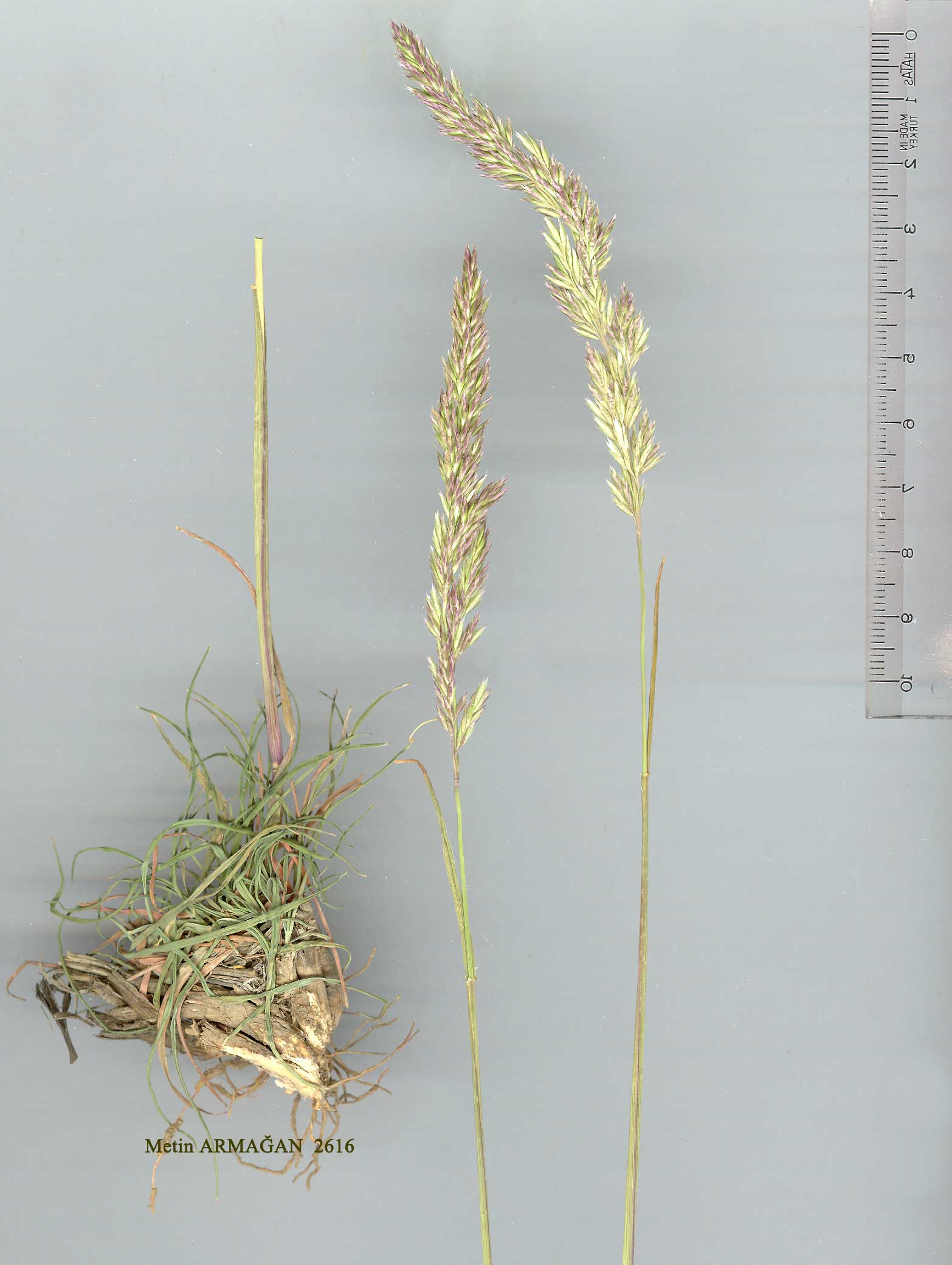 K. cristata (L.) Pers., Syn. Pl. 1:97 (1805). Syn: Air a cristata L., Sp. Pl. 63(1753)! Poa cristata (L.).L., Systema ed. 12, 2:94(1767)! Koeleria gracilis Pers., Syn. PL 1:97 (1805) nom. illegit.; Dactylis cristata (L.) Bieb., Fl. Taur.-Cauc. 1:67(1808)! Aim macrantha Ledeb. in Mem. Acad. Sci. Petersb. 5:515 (1812); K. macrantha (Ledeb.) Schultes in Schultes & Schultes fil., Syst. Veg. Mant. 2:345 (1824); K. cristata (L.) Pers. var. tenuifolia Boiss., Fl. Or. 5:5-75 (1884)! K. glaucovirens Domin in Mag. Bot. Lap. 3:273 (1904); K. pilati Ujhelyi in Ann. Hist.-Nat. Mus. Hung. 60:86 (1968);K. kurdica Ujhelyi, op. cit. 91 (1968). Ic: Fl Iraq 9: t. 131 (1968); Hubbard, Grasses ed. 2:242 (1968). Map 62. Densely caespitose perennial. Stems 8-40(-65) cm, glabrous or slightly hairy, usually erect, sometimes geniculate at base, 2-3-noded. Leaf sheaths persistent, glabrous to hairy; ligules to 2 mm, truncate; blades 2-10(-20) cm x 1-2 mm, flat or involute, green to glaucous, hairy or glabrous, mainly basal. Panicle 3.5-9(-14) x 0.5-2(-4.3) cm, cylindrical to oblong or occasionally lanceolate, rather dense, sometimes interrupted below, silvery-green or yellow. Spikelets 4-6.5(-7.3) mm, with 2-3(-4) florets. Glumes unequal, lanceolate, acute to acuminate; lower 2-4 mm, upper 3-4.7 mm. Lemma 3.3-6.3 mm, lanceolate, acute to acuminate, glabrous. Palea equalling lemma. Anthers 1.7-2(-3) mm. Fl. 6-7. Steppe, open stony places, meadows, mountain slopes, s.l-3000 m. Described from England, France & Switzerland (Hb. Linn. 85/17!). Widespread. A 1(E) Kırklareli: Haşköy to Kizilcamüsellim, A.Baytop(ISTE 6619 p.p.)! A2(E) Istanbul: Halkali, 4 v 1939, B. Post! A3 Bolu: Abant G., 17vii l940, B.Post! A4 Ankara: 8 km S.of Karagöl, 1200m, Coode& Jones 2207! A5 Çorum: Osmancık to Kargi, 600 m, Tobey 2687-1! A6 Tokat: d. Erbaa, nr Kale Köy, 300 m, Tobey 684! A7 Trabzon: Zigana Da., 2300-2400 m, T. Baytop (İSTE 14289a)! A8 Gümüşane: Baibut (Bayburt), 1862, Bour-geau! A9 Kars: 44 km W. of Iğdir, 1000 m, Spencer 0501! Bl Balıkesir: mt. Ida (Kaz Da.), Susuz Da., Sint. 1883:642! B2 Izmir: Boz Da., 1500 m, Buttler & Erben 17429! B3 Eskişehir: Türkmen Da., 790 m, Ekim 2260! B4 Ankara: nr Tuz G., 25 km N. of Koçhisar, 925 m, McNeill 338! Çankaya nr Ankara, vii 1931, A. Pilat (type of K, pilati). B5 Kirşehir: Mucur, D. 21829! B6 Sivas: 10 km S. of Gürün, Gökpinar, 1800 m, Sorger 71-50-27! B7 Tunceli: Munzur Da. above Ovacik, 2300 m, D. 31308! B8 Erzurum: above Atatürk Üniversitesi Campus, 1940-1980 m, Tatli 1522! B9 Van: Pelli Da., 3000 m, Edmondson 654! BlO Kars: 34km N.of Doğubayazit, 1650m, Spencer 0301! C2 Denizli:Honaz Da., 2300 m, Tuzlaci (İSTE 26509)! C3 İsparta: Eğridir, Yaka Köy, 1600-1980 m, Peşmen & Güner 1617! C4 Konya: Bozkir, Küçüksu, 1800 m, Çetik et al. 269! C5 Niğde: 22km E.of Ulukişla, 1200m, Sorger 62-66-7! C6 Gaziantep: Aintab (Gaziantep), Haradj. 1323! C8 Mardin: 2 km E. of Mardin, 1150 m, D. 28440! Deir Zafran, Sint. 1888:1130 (type of K. kurdica). C10 Hakkari: Zab river,-1.6 km from turning to Yüksekova, Trelawny 1306! N., W. & C. Europe, Mediterranean area (except N. Africa), Crimea, Caucasia, Iran, Transcaspia, Turkestan, S. Russia, Siberia, Afghanistan, W. Pakistan. |