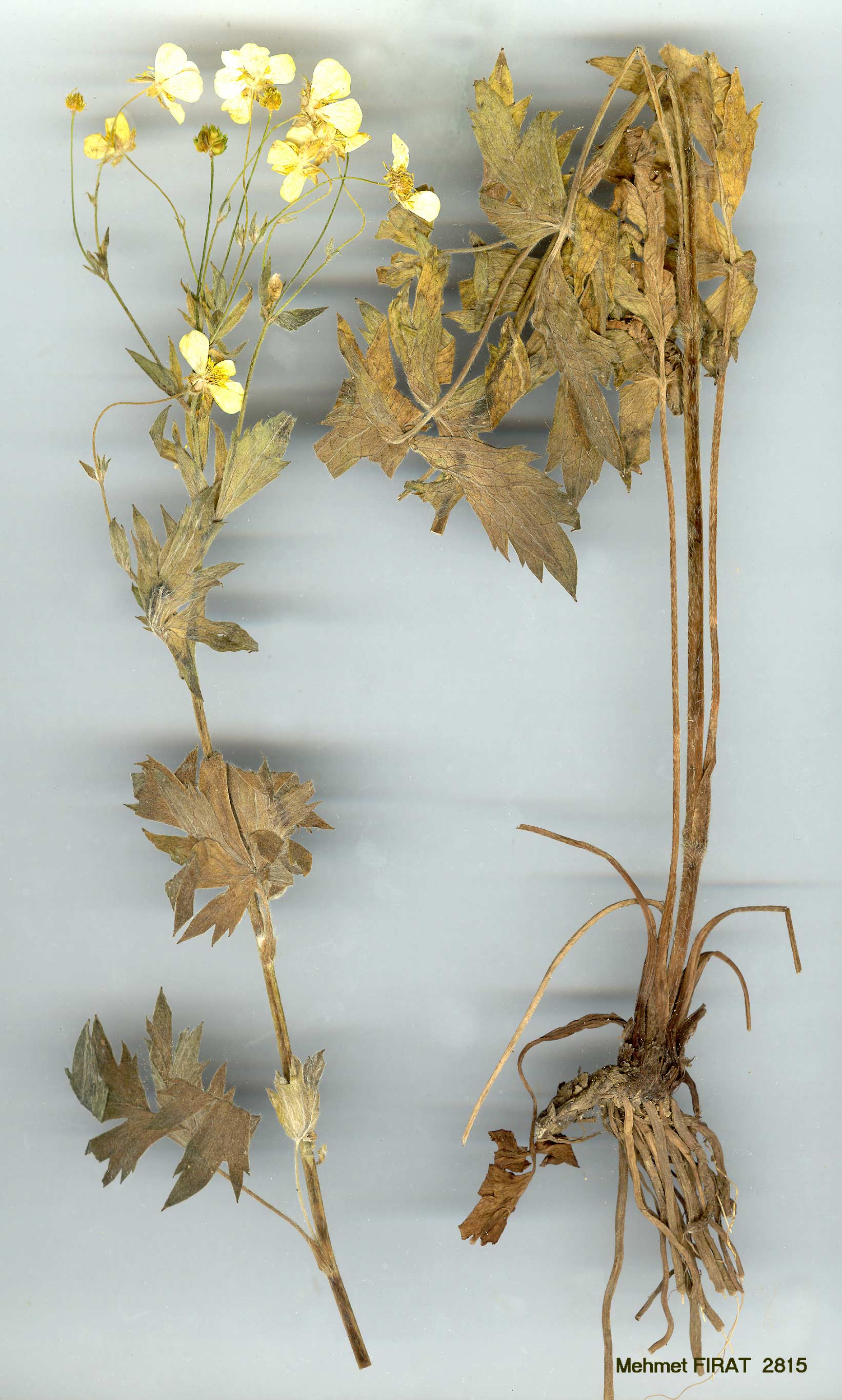 | R. crateris Davis in Notes R.B.G. Edinb. 23: 131, t. 6 (1960). Figures 3, 5, pp. 155, 173. Perennial, 15-40 cm, adpressed-pilose or glabrescent, greyish. Rhizome horizontal; collar strongly fibrous. Stems 1-6-flowered. Radical leaves subpinnatisect, ovate, with a stalked terminal segment and two pairs of lateral segments, all deeply dissected into oblong-cuneate laciniae often shortly incised near apex; upper leaves dissected into several long linear segments. Sepals reflexed. Petals 9-11 mm. Achenes semicircular, compressed, 3-4 mm, with a prominent nerve parallel to the margins, glabrous; beak falcate-circinate, 1-1.5 mm. Fl. 6-8. Volcanic slopes, 2300-3300 m. Type: Turkey B9 Bitlis: Nemrut Da., above Sogurt, 2350 m, Davis & O. Polunin (D. 23565, holo. K! iso. E!). S. Armenia. B9 Bitlis: Süphan Da., 3300 m, D. 24749 (leaves glabrescent, glaucous)! Endemic, Ir.-Tur. element. Closely allied to R. fenzlii. |