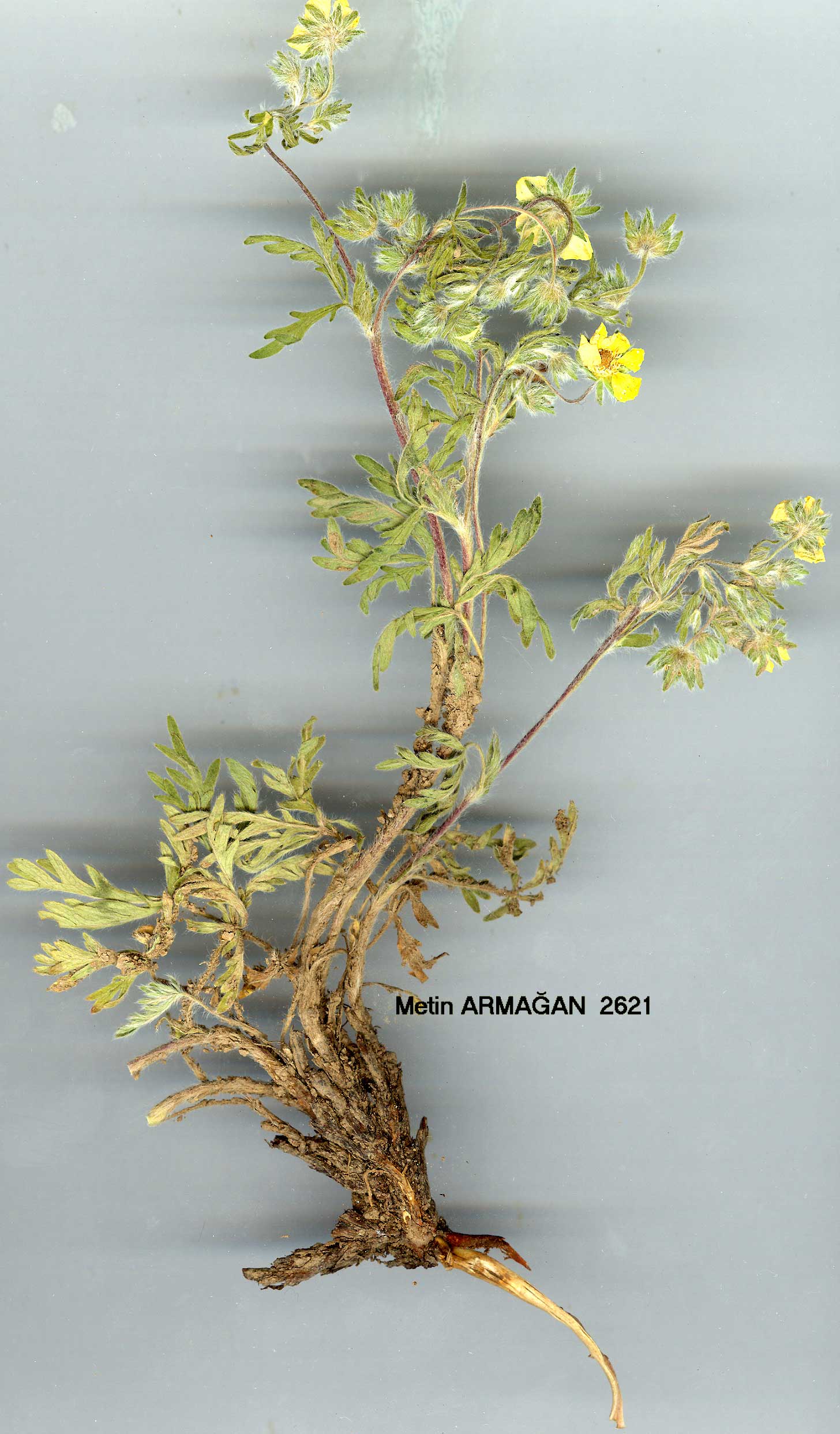 P. inclinata Vill., Hist. P1. Dauph. 3:567 (1788). Syn: P. canescens Besser, Primit. F1. Galic. 1:330 (1809). Ic: Reichb., Ic. Fl. Germ. 25: t. 24 (1910); Fl. Iranica-Rosaceae 1: t. 36 f. 1 (1969). Erect or ascending perennial, 15-50 cm. Flowering stems villous and with long patent hairs. Leaves digitate; leaflets 5-7, oblong-obovate; 15-40 x 7-16 mm, Serrate incised-dentate or pinnatifid with 6-12 pairs of teeth, ± grey-pubescent to-villous beneath, with some long simple hairs on the veins, usually sparselyvillous, green above. Epicalyx segments linear-oblong, shorter than ovate, 3-4 mm sepals. Petals yellow, obcordate, 5-7 mm. Achenes minutely rugulose; style subterminal, conical-filiform, slightly longer than achene. Fl. 6-8. Damp places, meadows, s. 1.-2300 m. Type: [France] environs de Sigoyer (Dauphine). Scattered throughout Turkey. A1(E) Kırklareli: nr. Velika Köprüsü, A. Baytop 13881! A2(E) Istanbul: Belgrat Ormani, 30 m, Balls 1935: 2380! A4 Zonguldak: Keltepe above Yenice at Sorgun Y., 1300 m, D. 38974! A5 Samsun: Ladik Istasyonu, Karadağ, 1050 m, Tobey 1144! A6 Amasya: Erbaa to Kozlu, 550 m, Tobey 2192! A9 Kars: 11 km from Kars to Selim, 1780 m, Hub.-Mor. 15383! B1 Balikesir: Edremit, Kazdağ-Beypinari, 1300 m, N. Yakar et al. (ISTF 26891!) B2 Denizli: edge of Buldan G., 29 vi 1965, Regel & Zeybek (EGE)! B9 Bitlis: E. flank of Nemrut Da., 1850 m, D. 23545! Van: Çatak, Kavuşşahap Da., 2300 m, D. 23045! B10 Kars/Ağrı: Doğubayazit to Iğdir, 2050 m, M. Zohary & Plitm. 2265-80! C6 Adana: d. Bahçe, Dumanli Da., Haradj. 3641! C. & S. Europe, C. & S. Russia, Caucasia, Iran, C. & N. Asia; naturalized in N. America. A very variable species, especially in the density of indumentum. Many hybrids have been recorded in Europe between this and other species of sections Argenteae and Rectae. According to Fl. Europaea 2, P. inclinata is intermediate between these two sections and may represent another apomictic hybrid complex. The specimen from B9 Van (cited above) is somewhat intermediate between this species and P. recta 'group C'. |