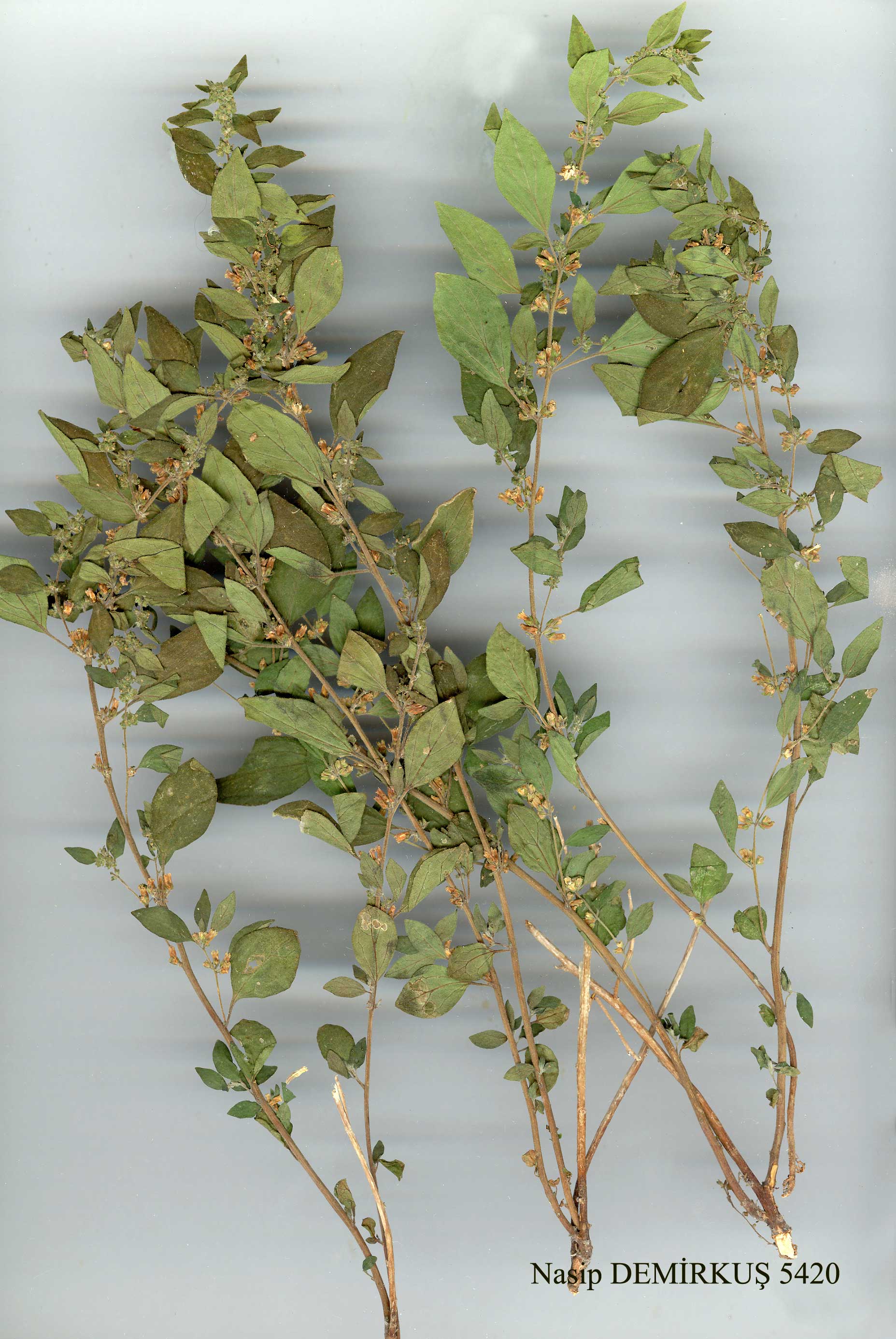 P. judaica L., Diss. Fl. Pal. 32 (1756). Syn: P. vulgaris Hill, Brit. Herb. 491 (1757) nom. illegit.; P. ramiflora Moench, Meth. 327(1794); P. diffusa Mertens & Koch in Rohl., Deutschl. Fl. ed. 3, 1:827 (1823); P. officinalis sensu Yar-molenko in Fl. URSS 5:399 (1936) non L. (1753). Ic: Ross-Craig, Draw. Brit. PL 27: t. 10(1970). Much-branched perennial herb, (12-)20-50 cm, spreading or decumbent-erect. Leaves broadly ovate to narrowly elliptic, to 7 cm. Inflorescences appear- ing as 2 lateral clusters to 1 cm in length at each leaf axil. Bracts mostly ovate to triangular-ovate, free or shortly connate round flower base. Male and hermaphrodite 'flowers similar, perianth of hermaphrodite flowers cylindrical-accrescent to c. 3.5 mm. Female flowers scarcely exceeding bracts, perianth segments somewhat indurate in fruit and connivent, 2-2.25 mm, narrowly lanceolate, subaristate with confluent brown midrib and borders. Fl. 4-8. Limestone cliffs, rocks, mouths of caves, walls, s.l.-2000 m. Described from Palestine (Hb. Linn. 1220/3!). Widespread. A1(E) Çanakkale: Gallipoli peninsula, Širjaev 271. A1(A) Çanakkale: Dardanelles, Sint. 1883:1193! A2(E) Istanbul: 3 km E. of Kilyos, 10-20 m, Edmondson 399! A2(A) Kocaeli: Kartal, 3 v 1903, Azn.! A3 Zonguldak: Safranbolu, 9-11 vi 1835, Wiedemann(!). A5 Sinop: Sinop, 0.5 m, Tobey 1025! A6 Ordu: Ordu, Hand.-Mazz. 1033. A7 Trabzon: Trabzon, Uotila 19670! A8 Erzurum: Ilica to Ispir road, Jenkins 2334! A9 Erzurum: Kosor, 9 vii 1903, König. B1 Izmir: Bergama, 400 m, Dudley (D. 34840)! B2 Kütahya: 18 km S. of Kütahya towards Gediz, D. 36912! B4 Ankara: Ankara to Kalaba, 4 v 1932, Kotte! B5 Kayseri: Kayseri, 1250 m, Bal. 1856:979! B6 Sivas: Zara, Bornm. 1893:3528! B7 Malatya: Gürün to Malatya, McNeill 459! B9 Van: Toprakkale, 1800 m, E.S. Brown 3307! B10 Ağri: 3 km E. of Doğu-bayazit, 1750 m, D. 43925! C2 Denizli: d. Acıpayam, Boz Da. above Geyran Y., D. 13431! C3 Antalya: Antalya, 10 m, It. Leyd. 1959:254! C4 Konya: Bozkir valley, 1100 m, D. 16616! C5 Adana: Toprakkale, Alava 6539! C6 Maraş: Akher (Ahir) Da., 1830-2135 m, Haradj. 1699! C7 Urfa: Birecik, Sint. 1888:254! C8 Mardin: 4 km from Idil to Cizre, 590 m, D. 42940! C9 Hakkari: Zap gorge 8 km below Hakkari, 1250 m, D. 45368! Is: Lesvos, 2 km N. of Mithima, 50 m, Edmondson &McClintock 2583(!);Samos, Rech. 3945;Khios, Platt 393! Ikaria, Rech. 3448;Kos, ruins of Kos, s.l., D. 40544! Rodhos, Fiori 141. S. & W. Europe, N. Africa, W. & C. Asia. |