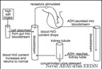 Vazopressin, yani antidiüretik hormon, ince atar damarlardaki düz kasların kasılmasını sağlayarak kan basıncını artırır. Ayrıca böbrek tüpçüklerini etkileyerek süzülen suyun geri emilmesini sağlar. Bu hormon az salgılandığı zaman, böbrekten yeteri kadar su emilmediği için vücut çok su kaybeder. Bu bireyler, kanında fazla şeker bulunan şekerli şeker hastalarında olduğu gibi çok su içip, çok su kaybederler. Bu yüzden bu kimselere şekersiz şeker hastası denir. Örnek: Şeker hastalığı örnek verilebilir. |