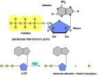 1-Adenin, riboz ve üç fosfat grubu içeren bir organik maddedir. Biyolojik sistemlerdeki enerji iletiminde birinci derecede önemlidir. 2-Adenozin trifosfat (ATP):Canlıların doğrudan kullandığı hücresel enerji molekülü, biyolojik enerji. |