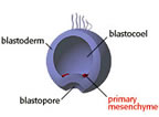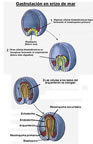 | Embriyonik çöküntü evresidir. Blastuladan sonraki erken embriyonik devredir.Başlangıçta ektoderm ve endoderm olmak üzere iki tabakadan ve bu iki tabaka arasında kalan boşluktan oluşur. Ektoderm ile endoderm arasındaki blastosöl ve arkanteron, endodermin içini astarlayan ve blastoporla dışarı açılan invaginasyonla oluşur.Embriyonun blastuladan sonra oluşan, hücrelerin içeri çökmesiyle ilk bağırsak boşluğunu meydana getiren erken embriyonik safhadır. Örnek cümle: Gastrula bir embriyonik gelişim evresidir. |