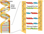 | 1-Eğer hidrojen atomu, iki atom arasında ortaklaşa kullanılıyorsa meydana gelen iki molekül arasındaki zayıf bir bağdır. Bu bağlar protein ve nükleik asitlerin yapısında birinci derecede önem taşır. 2-Hidrojen Bağları genellikle oksijen ve azot gibi negatif elektrik yüklü atomlarla diğer bir negatif yüklü atomlara kovalent olarak bağlanmış hidrojen atomları arasında oluşan bağlardır. Örnek cümle: Kovalent bağı daha iyi anlamak için hidrogen bağının yapısını daha iyi anlamak gerekir. |