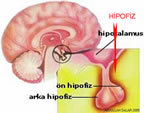 2-Beyinde hipotalamusun hemen altında yerleşmiş olan küçük bir bezdir ve hipotalamusa ince sapla bağlanır.