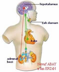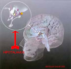 | 1-Görme, su dengesi, sıcaklık, uyku gibi çeşitli kontrol merkezlerini içeren üçüncü ventrikulusun tabanı ve ön beynin bir bölgesidir. 2-Beynin alt bölgesi olup bazı organ ve bezlerin çalışmasını düzenleyen kısımdır. 3- Hipotalamusta su dengesi, karbonhidrat, yağ metabolizmasi, iştah, kan basıncı, vücut sıcaklığı gibi merkezler bulunur. Bu bölge sinir ve endokrin sistemin birlikte çalışmasını da düzenler. Kısaca, hipotalamus iç denge (homeostasi) ile ilgili düzenlemeler yapar. Hormon Kontrol Merkezi. Görme, su dengesi, sıcaklık, uyku gibi çeşitli kontrol merkezlerini içeren üçüncü ventrikulusun tabanı ve ön beynin bir bölgesidir. Örnek cümle: Hipofiz bezine hormon salgılaması için emir veren beyin kısmıdır. |