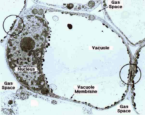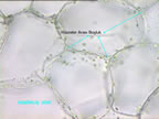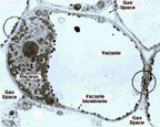 | 1-İnterselüler alan; Özellikle bitki hücrelerinde (Parankima) hücre köşelerinde genellikle üçgen şeklinde içi boş alanlardır. 2-Hücre bölümesi esnasında köşelerdeki şizogen olşumlardan (köşelrde çatlamalar-erimeler) meydana gelir. 3-Gaz alış-verişinde görev alır. Örnek cümle: Bitkinin dokularını meydana getiren hücreler arasında orta lamel, hücre arasıboşluk, geçit ve plasmodesmler bulunabilir . |