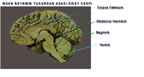 ve omuriliği şiddetli sarsıntılardan koruyan serebrospinal sıvı bulunur. Beyin, ön-orta-arka beyin olmak üzere üç kısımda