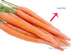 Havuç renk maddesidir. Tatlı patates ve yaprak sebzelerde bulunan sarı,turuncu veya kırmızı renk maddesidir. Hayvan vücudunda A vitaminine dönüştürülür.