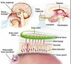 Çizgili yapı,beyin düğümü.Her beyin yarı küresinin tabanında bulunan nöron ve sinir liflerinden oluşan korteksin altındaki büyük kümedir. Örneğin kafatasında bulunur.