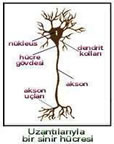 1-Kolleteral ve terminal uzantılarıyla birlikte bir sinir hücresidir. Sinir sisteminin yapısal birimidir. 2-Bir nöronda, hücre gövdesi, hücre gövdesinden çıkan dendrit ile akson bulunur. Bazı nöronların aksonu üzerinde schwan hücresinin oluşturduğu miyelin kılıf vardır. Nöron, uzantıları aracılığıyla öteki nöronlarla, bezlerle, kaslarla ya da uyartı alıp verebileceği bütün başka hücrelerle bağlantı kurar. İnsan organizmasında on milyar kadar bulunduğu sanılan nöronların büyük çoğunluğu beyinde yerleşmiştir. Örnek:göz sinirleri. |