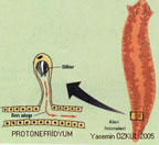 1-İlkel omurgasızların ve bazı ileri hayvanların larvalarındaki alev hücresinden oluşan boşaltım organı. 2-Bazı ilkel omurgasızlarda görülen, bir uçta alev hücreleriyle başlayan ve dallanan kanalların bir merkez kanalla birleşerek, dışarıya açıldığı boşaltım organı tipi. |
