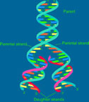 1-DNA'nın kendini eşlemesi. 2-Mitoz veya mayoz hücre bölünmelerinde DNA kendini eşler. Nitekim DNA'nın kendini eşlemesi, hücre bölünmesi öncesindeki hazırlık evresinde (interfaz) olur. Bu yüzden DNA eşlemesi (replikasyon). hücre bölünmesinin başlangıcı sayılır. |