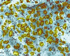 1-Protein sentezinden sorumlu olan organel. 2-Protein ve ribonükleik asitten oluşmuş ve sitoplazmada serbest olarak ya da hücrenin endoplazmik retikulum zarına bağlanmış olan küçük granüller. Protein sentez yeri. |