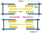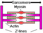 Kaslarda kasılma birimi olarak sarkomer kabul edilir.Sarkomer, iki Z çizgisi arasındadır.Z çizgisi I bandını ikiye ayırır.Kasılma sırasında İki Z çizgisi birbirine yaklaşır. Z çizgisi birbirine yaklaşınca sarkomerin boyu kısalır.Kasılma esnasında A bandının boyu değişmez. I bandı kısalır. H bandı aktin ipliklerin birbirine yaklaşmasından dolayı görülmez.İşte iki Z çizgisi birbirine yaklaştığında kasın boyu kısalır ve kas kasılır.Kas gevşeyince iki Z çizgisi birbirinden uzaklaşır.Yani sarkomer ilk halini alır.Kasılma ve gevşeme sırasında aktin ve miyozin iplikleri arasında kaymaya benzer bir hareket görülür. |
