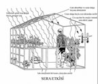 nehirlerin ve okyanusların donması engellenmiş olur.Bu şekilde oluşan, atmosferin ısıtma ve yalıtma etkisine sera etkisi denir. |