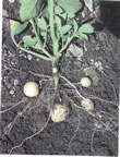 1-Şişkinlik, yumru, düğüm : Yumru gövde. Patates gibi bazı bitkilerin besin depo eden şişkin yer altı gövdesi. 2-Toprak altında gelişen etli, şişkinleşmiş ve yuvarlak bir gövde tipidir. |
