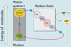 Işıklı enerji üretimi.Bitki hücrelerinde klorofil tarafından tutulan ışınım enerjisinin kullanılmasıyla su ve karbondioksitten karbonhidratların sentezlenmesi olayıdır.
