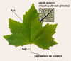 Yaprak ayası. Yaprağın yassı ve genişlemiş bölümü. Tek yada çok parçalı oluşuna göre yalın ve bileşik yaprak olarak adlandı-landırılırlar.