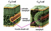 Yaprak ana dokusu.Yaprakta alt ve üst epidermisler arasında görülen parankimatik doku.