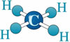 CH4.Bir karbon ve dört hidrojen atomundan oluşan yapı.