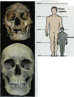Java adasının doğusunda, Endonezya'ya ait Flores adasında bulunan 18.000 yıl önce yaşamış cüce bir insan türüne ait fosiller, antropoloji dünyasında şaşkınlık yarattı. Adada Liang Bua mağarasında bulunan ve neredeyse bütünlüğünü koruyan kafatası ve iskelet fosilleri, yalnızca l m boyunda yetişkin bir kadına ait. Nature dergisinin 28 Ekim tarihli sayısında yayımlanan bulgulara göre Homo floriensis adı verilen türün kafatası, bir greyfurt büyüklüğünde ve beyin hacmi de şempanzelerinki gibi, modern insanın (Homo Sapiens) üçte biri kadar. Ancak araştırmacılar, H. floriensis'in modern insanınkine yakın özellikleri olduğunu vurguluyorlar. İskeletin kalça kemikleri, Afrika'da yaşamış insan-öncesi türlerin (Australopithecus) kalça yapısına yakın olmasına karşılık, ince bacaklarının anatomisi, kadının modern insanlar gibi iki ayak üzerinde dik yürüdüğünü gösteriyor. Kafatasının yapısı da eski ve modern özellikleri bir arada taşıyor. İlk hominid
