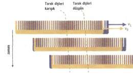 Faz hızı ile grup hızı arasındaki farkı, diş aralıkları farklı olan iki tarağı üstüste koyarak kolayca görebiliriz. Farklı aralıklı dişlerin girişimi sonucu, açık ve koyu renk bantlar oluşur. Eğer taraklar birbirlerine göre farklı V1 ve V2 hızlarıyla hareket ettirilir-lerse, koyu ve açık renk bantlar her iki taraktan da farklı hızla hareket ederler. Bu hıza grup hızı, tarakların hızına da faz hızı denir.