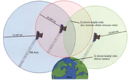 noktada kesişir. Bu noktalardan yeryüzünde olanı, alıcının konumuyla aynıdır. Üç uyduyla yapılan konum