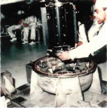 ABD'nin nükleer roket motoru NERVA Motor. 8 m yüksekliğinde. Reaktör ortada ve yakıt tankları üstte.