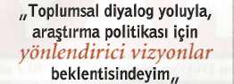 Yarınlarda güvenilir bilgiye ulaşmak isteyenler, bugünden bilime doğru soruları sormak zorunda. Böylece tartışmanın merkezine önce teknolojik gelişmeleri değil, aksine soruları koymuş oluyoruz: Toplum nasıl bir değişime uğrayacaktır? Yarınlarda nasıl yaşamak istiyoruz? Benim bu süreçten beklentim, ülkemizdeki insanların yalnızca kabul etmekle kalmayıp aynı zamanda destekleyece- , ği araştırma politikasını yönlendirici vizyonlar. Araştırma insanlara hizmet etmeli, ve insanlar da kendilerine neyin hizmet ettiği konusunda karar vermelidir. Bu bağlamda bilgi teknolojisi gelecekte muhakkak en yararlı araçlardan biri olacaktır.