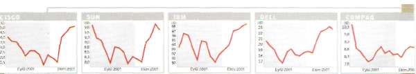 YANLIŞ ALARM: IT firmalarının değerleri saldırılardan sonra tekrar eski düzeylerine döndü. Sadece Compaq, masraflı bir geri alma işlemi nedeniyle sınıfta kaldı. Kaynak:Consors