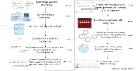7500 bazdan (nükleotidden) oluşan virüs genomunu sentezlemeye, ticari olarak satılan ortalama 69 baz uzunluğunda uçiarı birbirini tamamlayıcısı olan saf, artı ve eksi kutuplu oligonükle-otid zincirlerinin birleştirilmesiyle başlandı. Bir DNA ikili sarmalının yalnızca bir zinciri protein sentezinde kullanılır, diğer zincir ise onun tamamlayıcısı olarak görev yapar. Bu zincirlerden protein sentezi için kullanılanı artı kutuplu, diğeri eksi kutuplu olarak tanımlanır. Birbirlerinin tamamlayıcısı olan bu kısa zincirlerin birleştirilmesiyle ortalama uzunluğu 400-600 baz çifti (bç) olan ve yine yapışkan uçlar taşıyan zincirler elde edildi. Bu DNA parçaları da üç farklı plaz-miî içine yerleştirilecek üç büyük DNA dizisi elde etmek üzere birleştirildi. Halkasal DNA molekülleri olan plazmitler, bakteriler içinde kendi kendilerini kopyalayarak çoğaltabilen, bakteri kromozomlarına göre daha küçük işlevsel DNA'lardır. Genetik mühendisliğinde DNA'yı sonradan tekrar birleşebilecek şekilde kesebilen enzimlerle-restriksiyon enzimleri- yeniden biçimlendirilmiş DNA parçalarını hücrelere sokmak için kullanılır. Wimmer'de küçük DNA zincirlerini uç uca ekleyerek elde ettiği normal yollarla sentezlenemeyecek uzunluktaki üç DNA parçasının her birini önce bir plazmit içine yerleştirmiş. Daha sonra bu plazmitleri teker teker enzimlerde de ortolog, yani genomlardaki iki farklı genin aynı kökenden gelip aynı işi yapan genlerin, asgari gen takımında büyük olasılıkla bulunmaları gerektiği görüşünden yola çıkmışlar. Ko-onin her İki bakteride ortolog olan 240 gen belirlemiş. Ancak''ortolog olmayan gen değişimi" nedeniyle bu sayı, tam olarak asgari gen takımına karşılık gelmiyor. Ekip, ortolog olmayan, ancak vazgeçilmez işlevlere ait 22 gen daha tanımlamış. Bunlardan parazit yaşamla ilgili olduğu belirlenen 6 genin sonradan elenmesiyle: Çağdaş hücresel yaşama ait asgari gen takımının 256 (yaklaşık 260) genden oluşması gerektiği sonucuna ulaşılmış. Bu sonuç, daha önceden B. subtilisle yapılan çalışmayla da uyumlu.