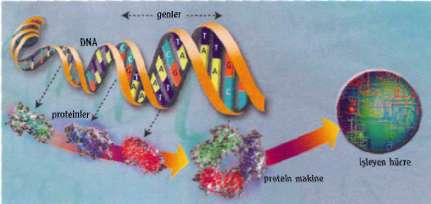 matematiksel bir kod kullanarak aktaran bir genetik veri bankasıdır. Hücrenin işlevlerinin pek çoğu, maddesel olan donanım düzeyinde değil, bilişim düzeyinde anlaşılabilir. Kimyasal maddeleri bir tüpün içinde karıştırarak yaşam elde etmeye çalışmak, kablo ve düğmeleri lehimleyerek Windows 98 elde etmeye benzer: İşe yaramaz, çünkü soruna yanlış kavramsal düzeyde yaklaşılmıştır." Bir canlıya ait asgari gen takımını belirlemek; hücreyi oluş-turacak yapısal molekülleri üretmek üzere gerekli enzimlerin bilgisini, inerji akışının hangi ana metabolik oldan hangi enzimlerle sağlandığını, hücre bölünmesi için DNA'yı uygun biçimde kopyalayacak enzimleri bilgisini vb. belirlemek Davies'in sözünü ettiği işletim sisteminin kodlarını çözmemiz anlamına geliyor.