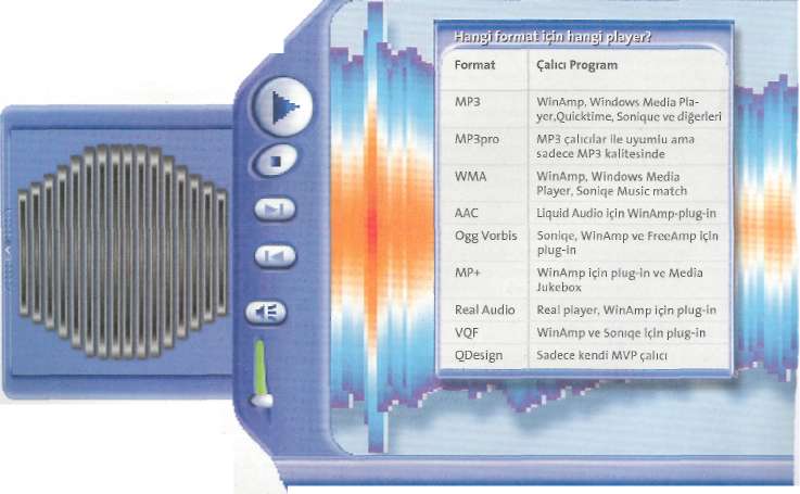 Aslında MP3 hepsinden daha üstün görünüyor. Bu alanda daha büyük bir gelişme kaydedebilen başka bir ses standardı olmadı. Bir ölçüde benzeri sayılacak Real Audio, akıcı işleyişi bakımından ilk sırada ama WMA, kaynağından dolayı, yani Microsoft evinden çıktığı için kazançlı. WMA, 1999'da Microsoft'un geliştir-